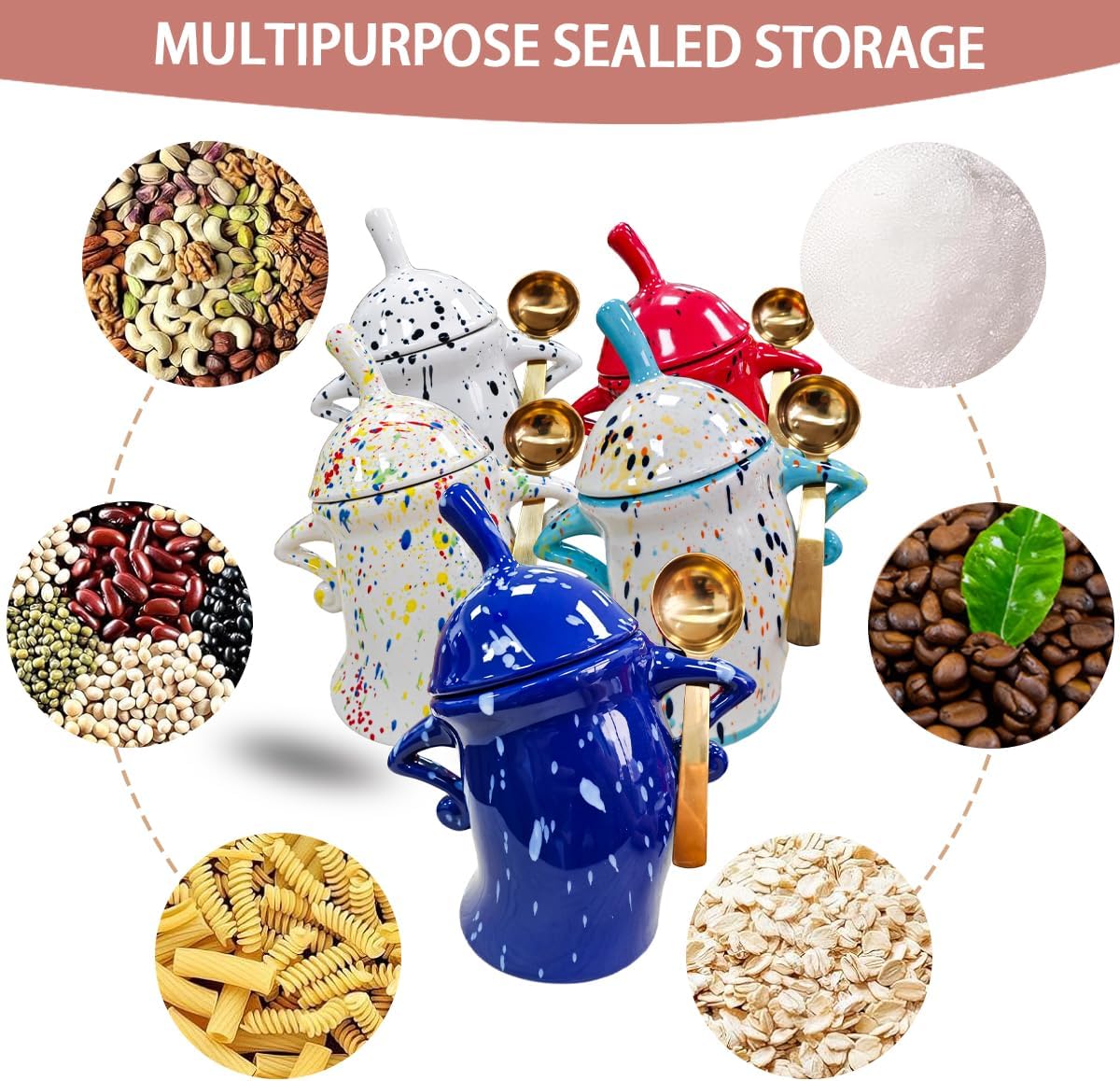 - **Multi-Purpose **Kitchen Organization System****:Versatile ceramic canisters for countertop hold coffee, sugar, flour or baking supplies; decorative jars double as statement-making organizers; stackable for farmhouse aesthetic.