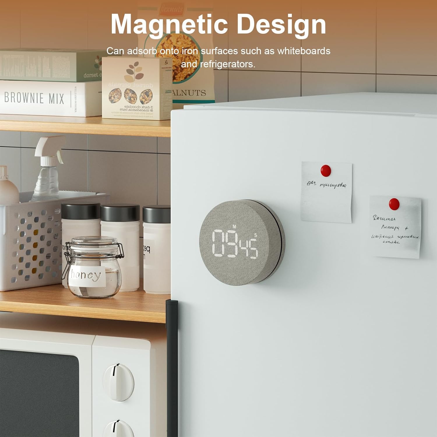 - 【Versatile Placement and Modern Aesthetics】: This timer is equipped with silent mode, treble, two modes and a strong magnetic back cover for secure mounting on a refrigerator, metal cabinet or table. Its minimalist digital timer display and rotating bezel provide a modern home time accessory for any decor.