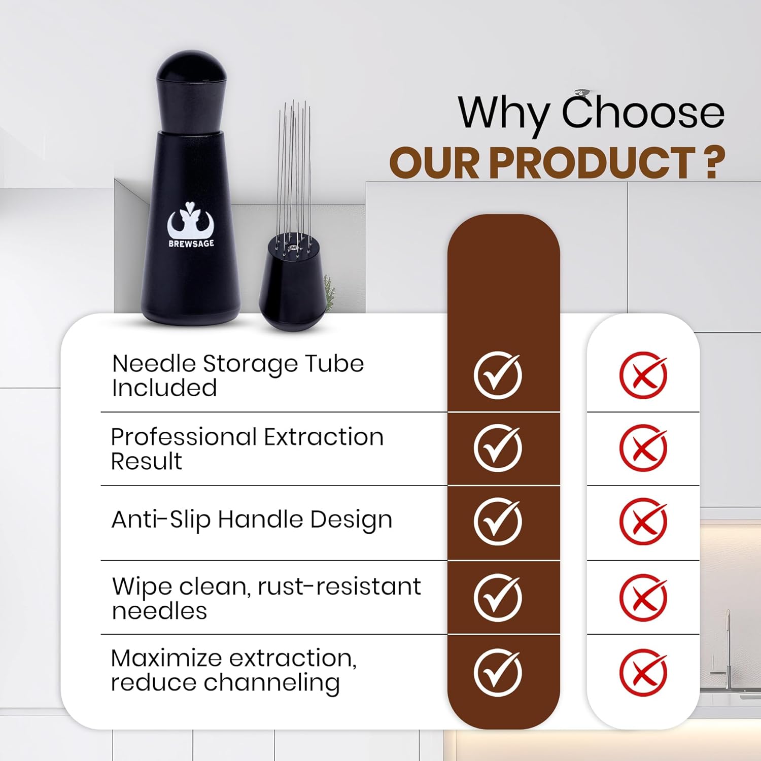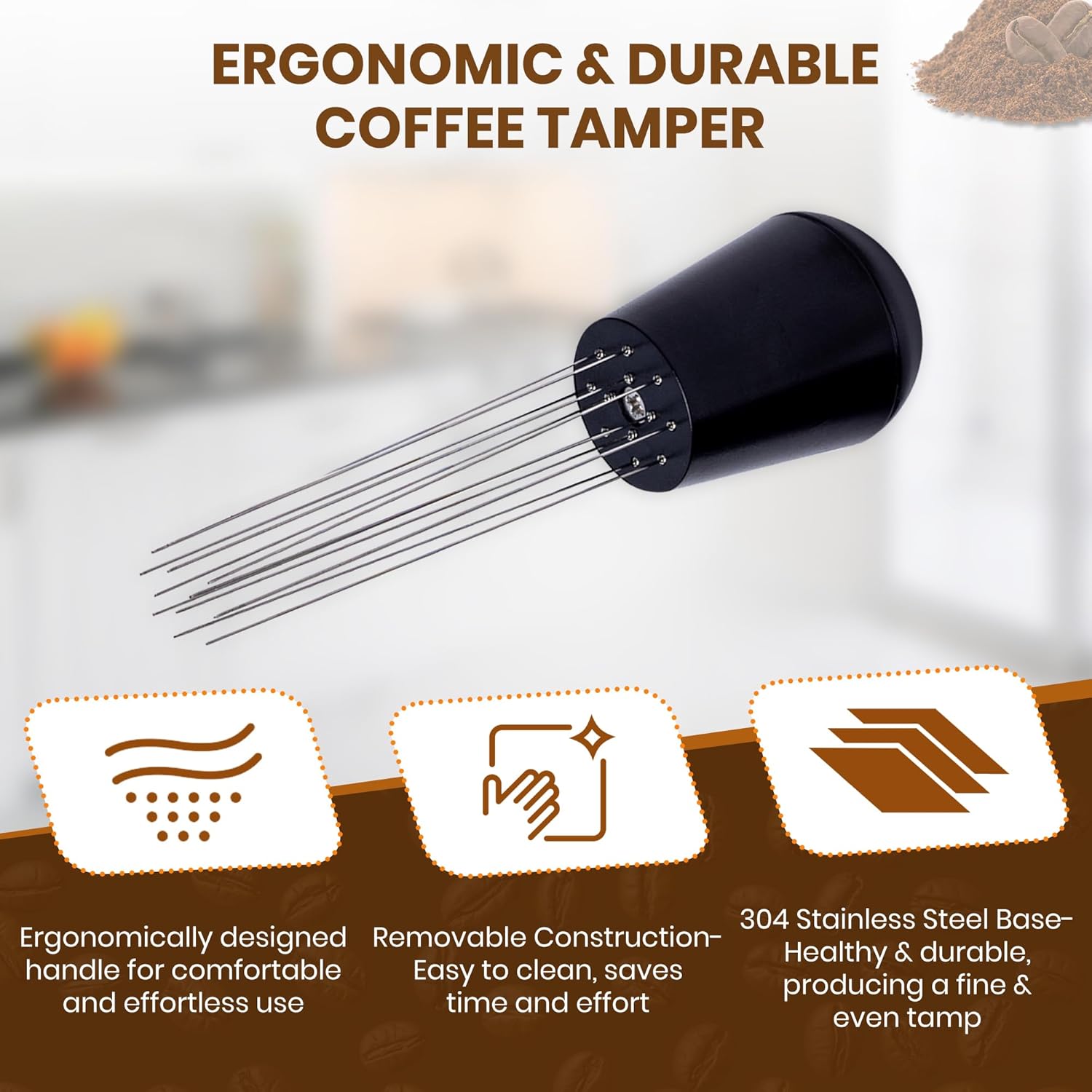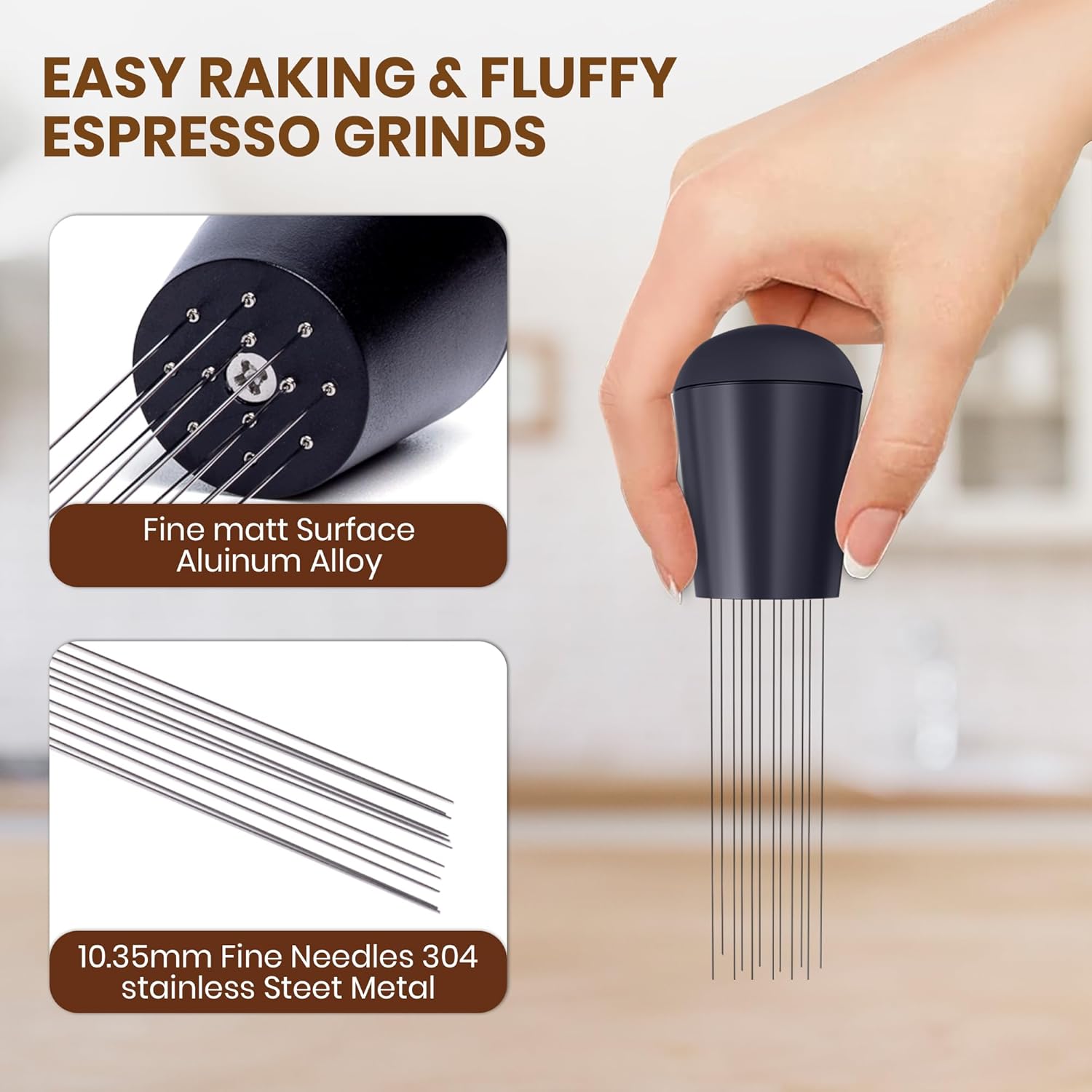 - ✅ 🎯 Better Extraction with Less Channeling – The WDT (Weiss Distribution Technique) tool uses ultra-fine 0.35mm stainless steel needles to gently stir and evenly distribute coffee grounds in the portafilter, helping eliminate clumps and channeling for a more balanced, flavorful shot every time.