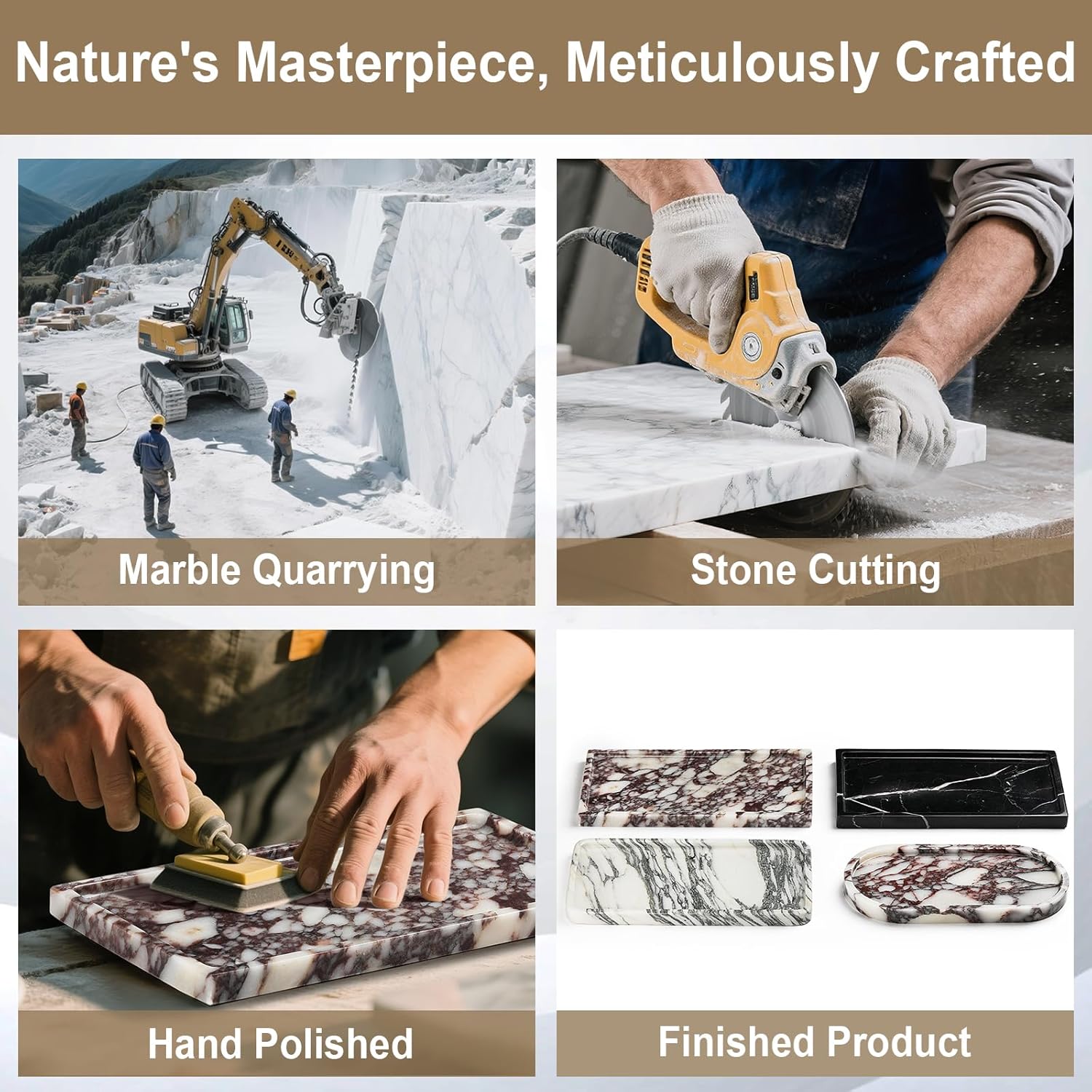 - 100% Natural Marble Tray: Made from premium natural marble, crafted through manual quarrying, precision cutting, multi-step polishing, and finishing to ensure high-quality. Our marble has its own unique pattern, ensuring that each tray has an irreplaceable natural beauty, and is one of a kind. Unlike ordinary ceramic or resin trays, this marble tray offers safety, eco-friendliness, durability, and a smooth finish