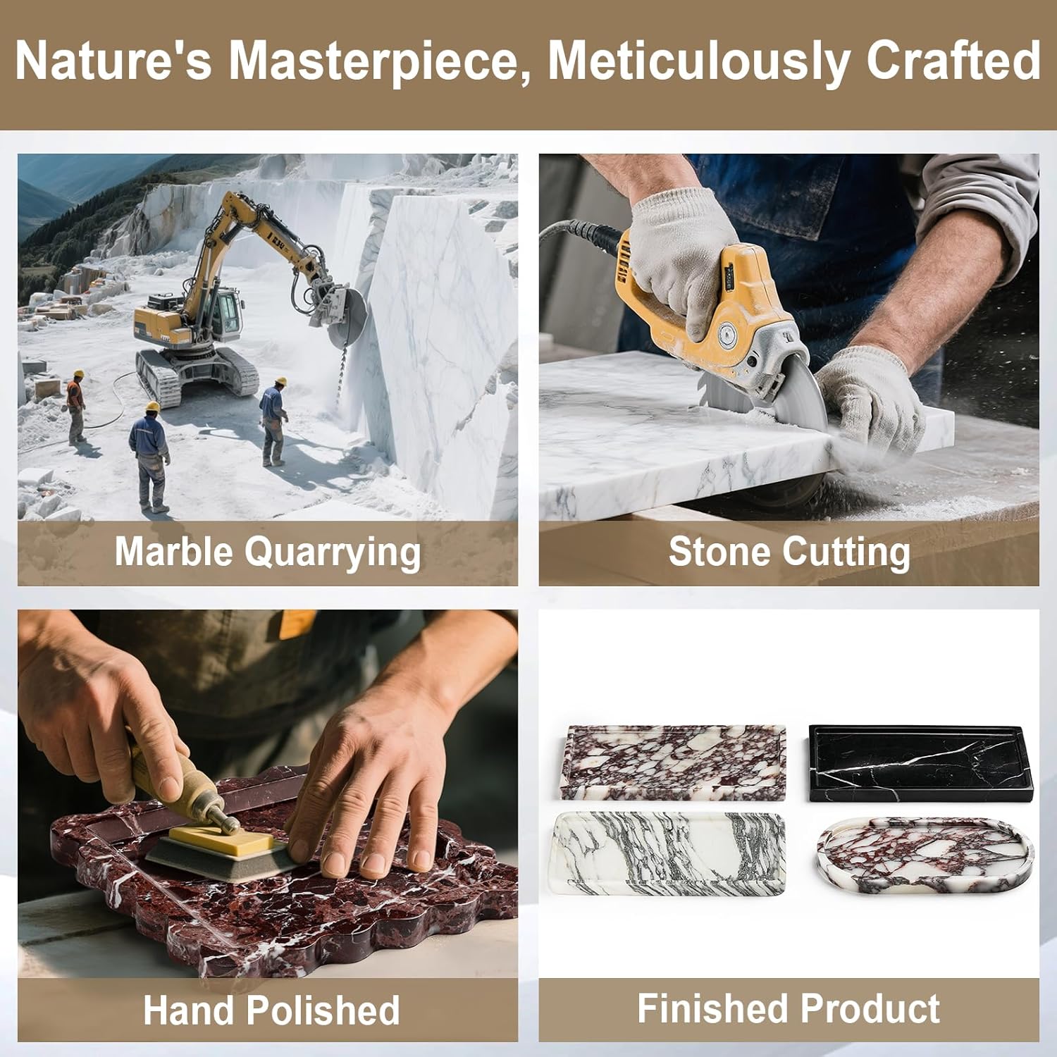 - 100% Natural Marble Tray: Made from premium natural marble, crafted through manual quarrying, precision cutting, multi-step polishing, and finishing to ensure high-quality. Our marble has its own unique pattern, ensuring that each tray has an irreplaceable natural beauty, and is one of a kind. Unlike ordinary ceramic or resin trays, this marble tray offers safety, eco-friendliness, durability, and a smooth finish