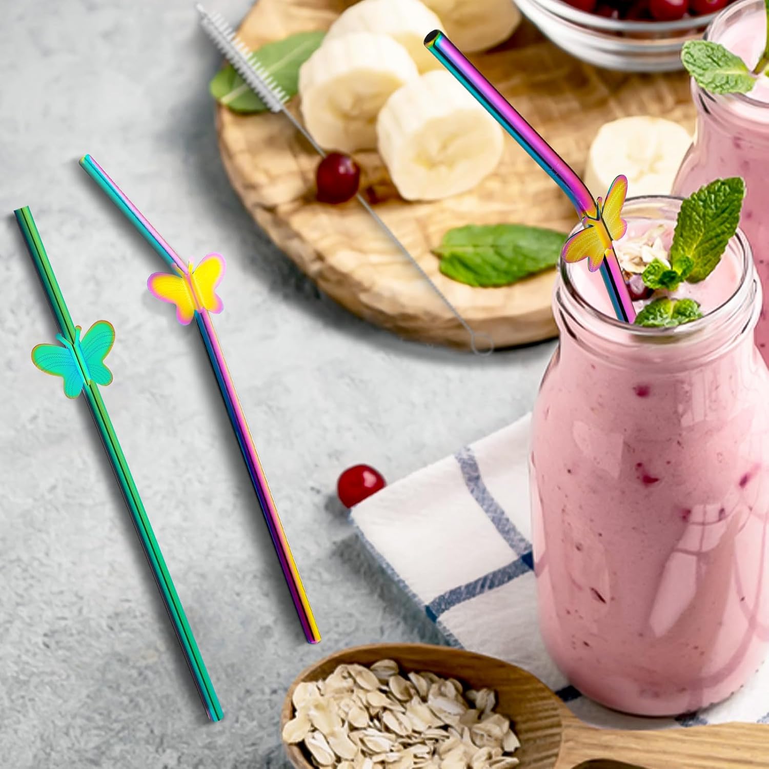 - Decorative Butterfly Charms: Unique butterfly decoration makes each metal straw visually appealing, perfect for parties or daily use, a stylish choice for family gatherings, bars, restaurants, camping, cocktail parties