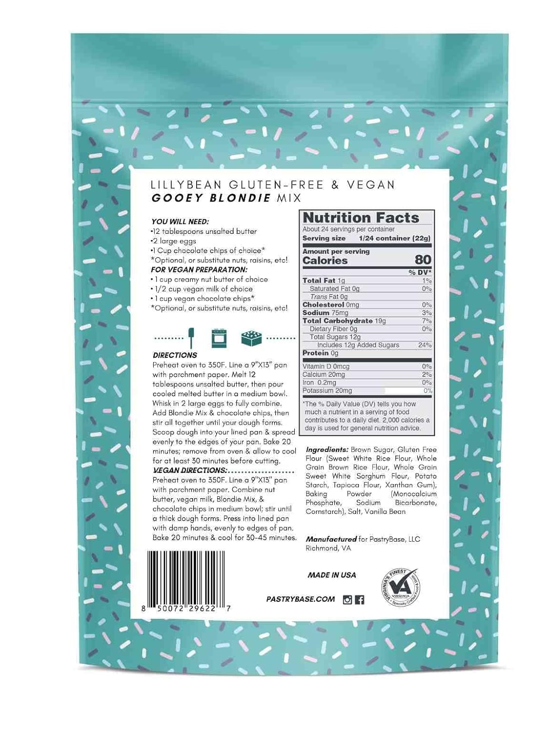- GOOEY BLONDIE PERFECTION: With LillyBean's award-winning Gluten-Free Gooey Blondie Mix, it’s easy to create rich, soft, melt-in-your-mouth blondies at home. This mix delivers the classic gooey texture and buttery flavor you crave—without any of the gluten!