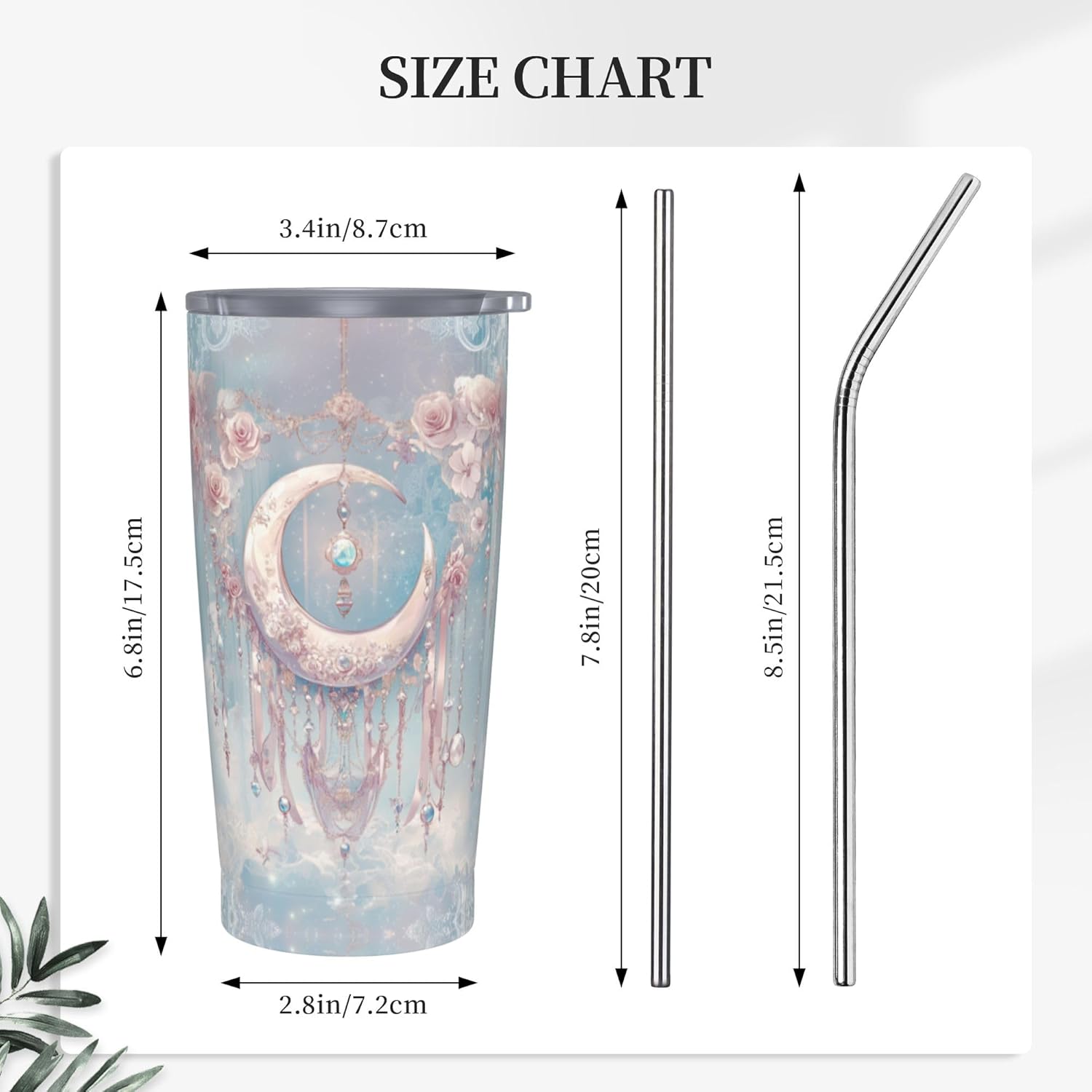 Moon Tumbler with Lid and Straw 20oz Coffee Tumblers Leakproof Stainless Steel Travel Mug Vacuum Insulated Cup for Iced and Hot