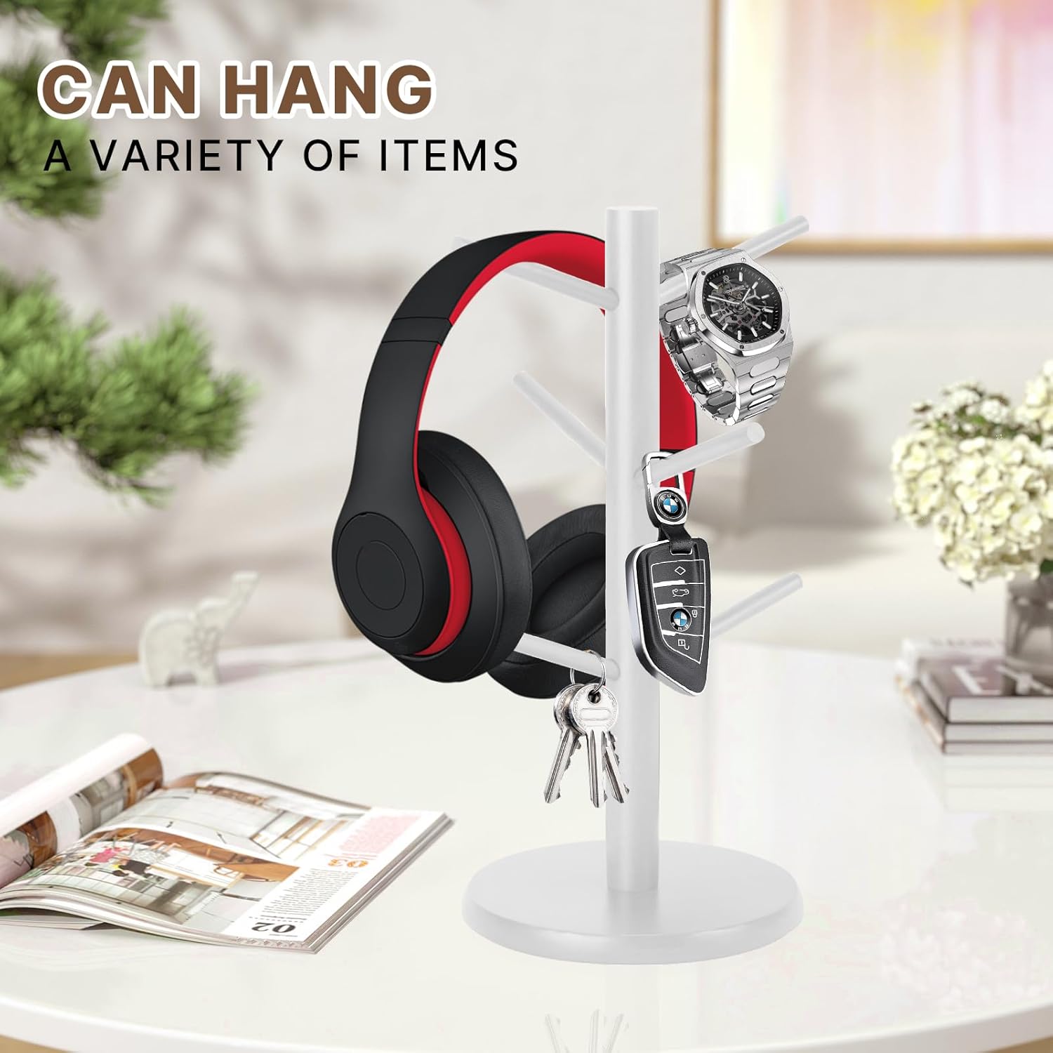 Wooden Mug Holder Tree, Coffee Cup Holder, Mug Organizer with 6 Hooks (White)