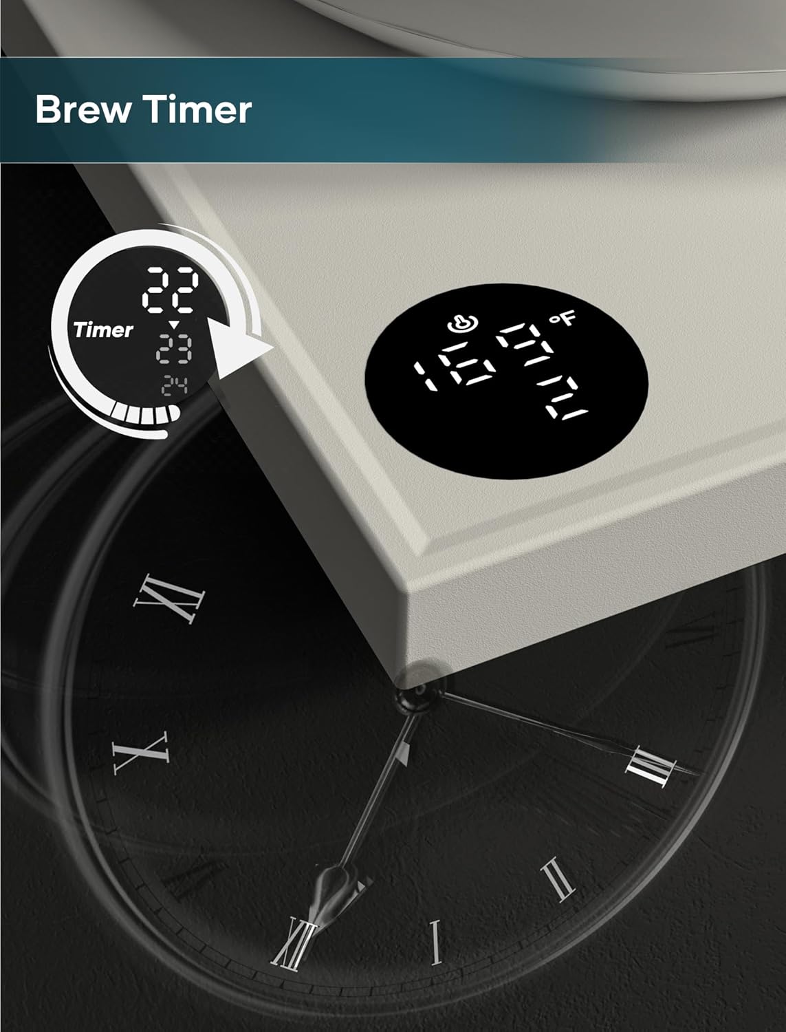- Brew stopwatch - With the built-in exact stopwatch, you can check the brew time on the screen at any time to adjust the rhythm of pour over coffee. After counting down for three seconds, the stopwatch will begin to run at zero.
