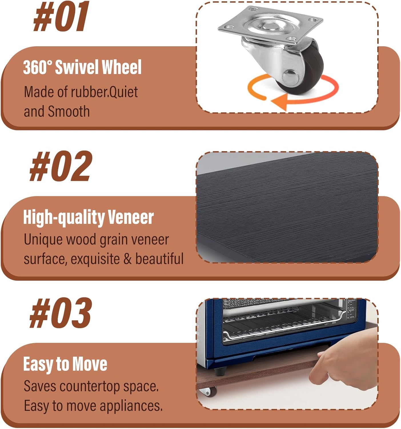 - 【Multi-Functional Rolling Tray】The sliding tray measures 12.9“ × 15.8” × 1.2", suitable for Breville, Keurig K-Mini, Ninja, small coffee makers, espresso machines, air fryers, toasters, and stand mixers.