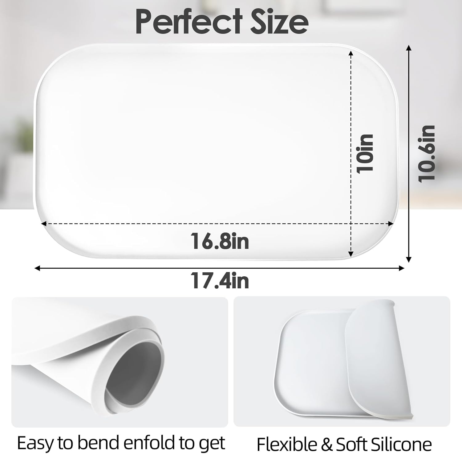 Silicone Coffee Maker Mat with Lip, 17.4'' x 10.6'' Heavy Duty Coffee Maker Mat for Countertops, Coffee Tray Fit Under Coffee Machine Appliance Automatic Machines Espresso Accessory, White