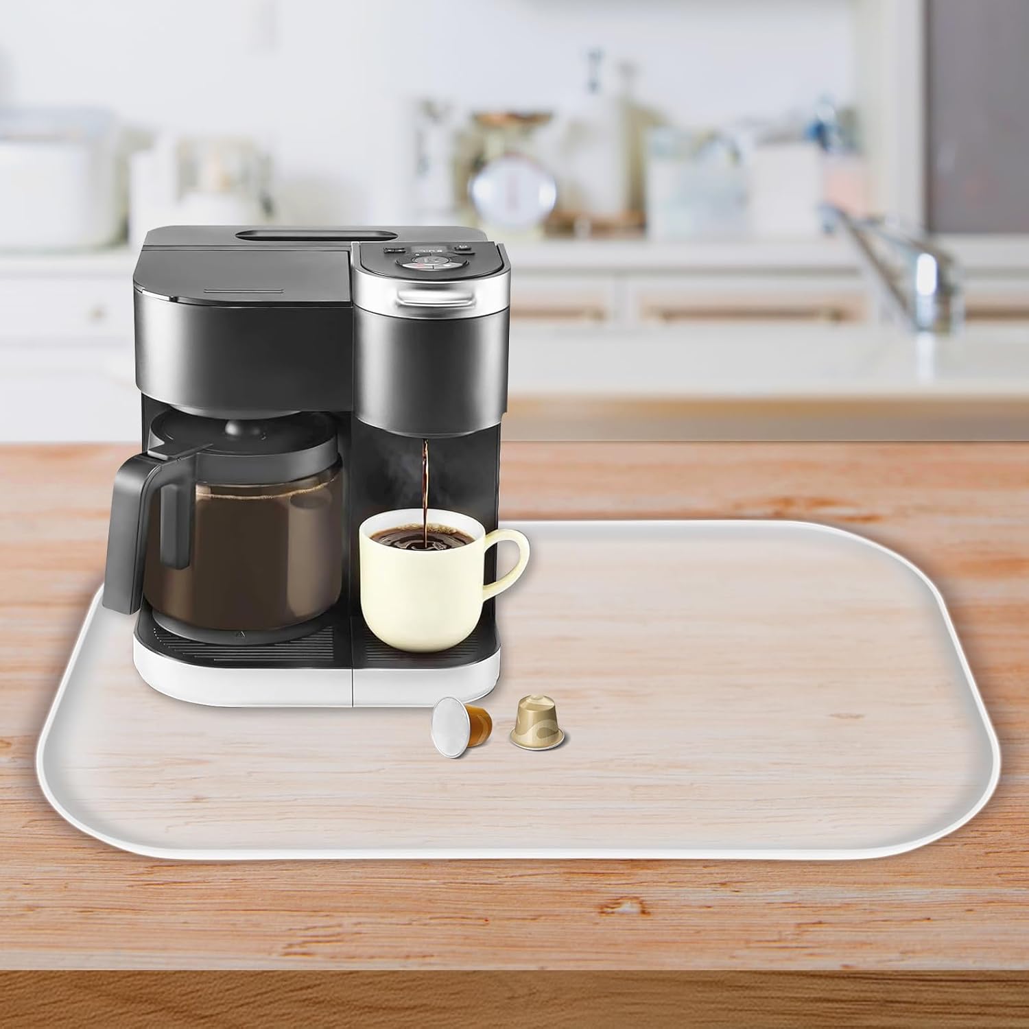 - Easy to Clean and Storage: The mat for under coffee maker is easy to clean, as it can be wiped down, washed with soap and water or placed into a dishwasher. After dry, the mat is flexible, making it easy to fold and store when not in use.