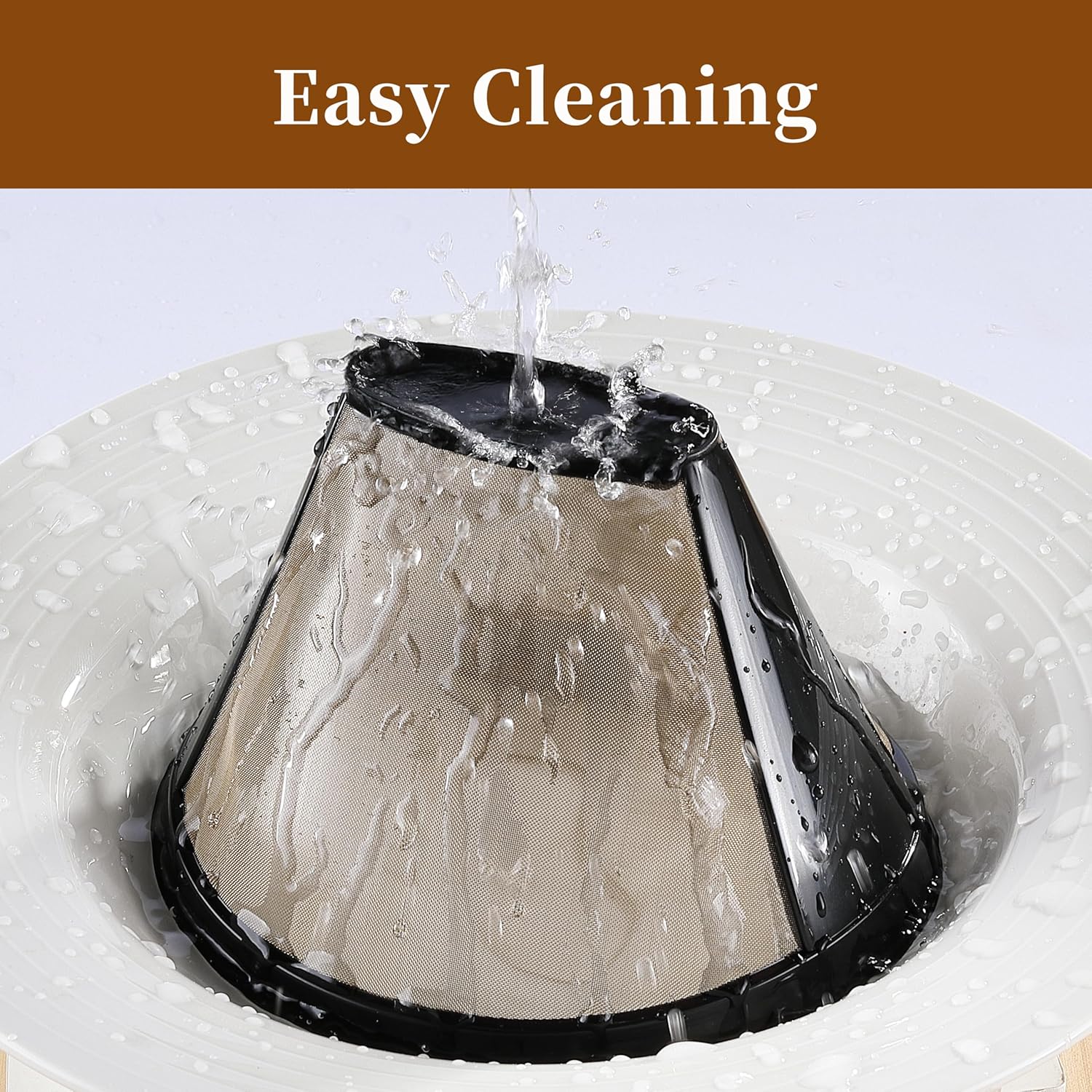 - High-Quality Stainless Steel Fine Mesh: Crafted with premium food-grade stainless steel mesh and BPA-free plastic framing, these metal coffee filter basket are built for both safety and performance. The ultra-fine mesh of the permanent coffee filter effectively traps grounds while allowing the rich oils and flavors of your coffee to pass through, delivering a smooth, full-bodied brew every time—no papery aftertaste, no grit.