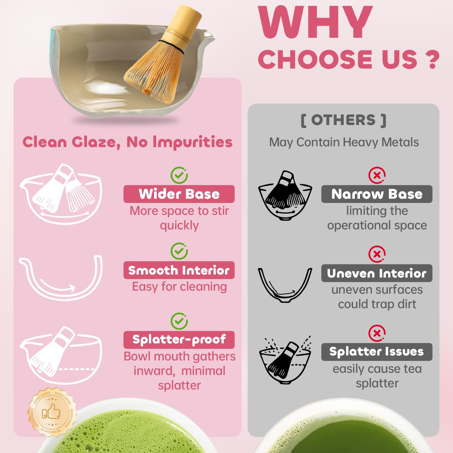 - Convenient Bowl Spout: The ceramic matcha bowl features a thoughtful spout design that allows for smooth and controlled pouring. This elegant addition not only enhances your matcha preparation, but also prevents spills, ensuring a clean and enjoyable experience.