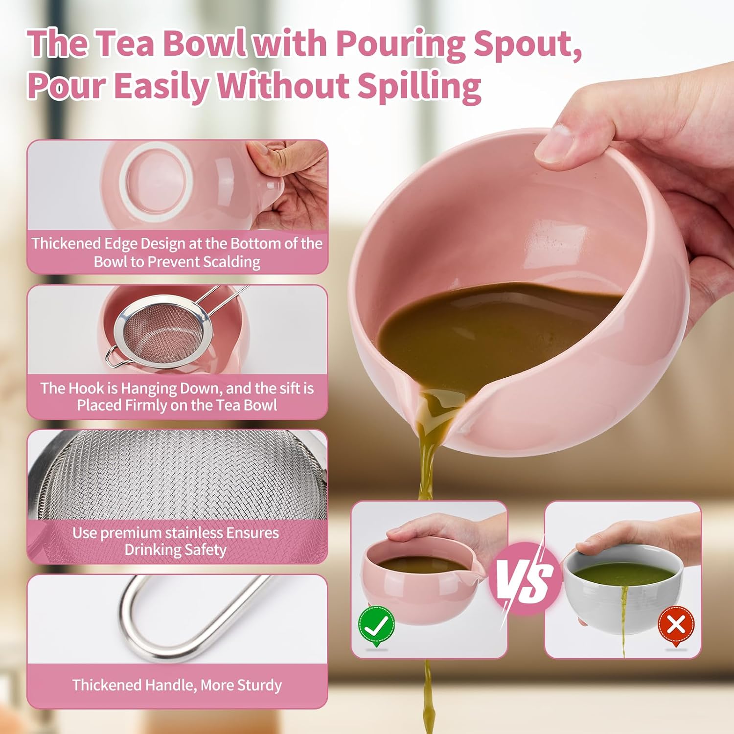 - 【Matcha Tea Lover's Delight】Our matcha tea set can play an integral role in any matcha tea set. It's a perfect companion for your matcha tea drinking. The lead-free matcha bowl has a pouring spout to prevent liquid from spilling, making it more enjoyable for you to enjoy matcha with your family and friends.
