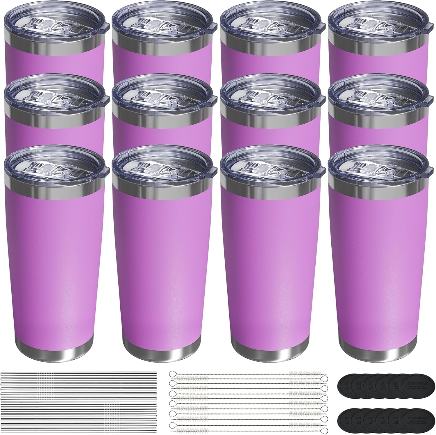 Travel Coffee Tumbler 20oz, 12 Pack Leakproof Travel Coffee Mug with Lid and Straw, Stainless Steel Double Wall Vacuum Insulated Tumbler for Hot/Iced Drinks (Textured Matte, Lilac Pink)