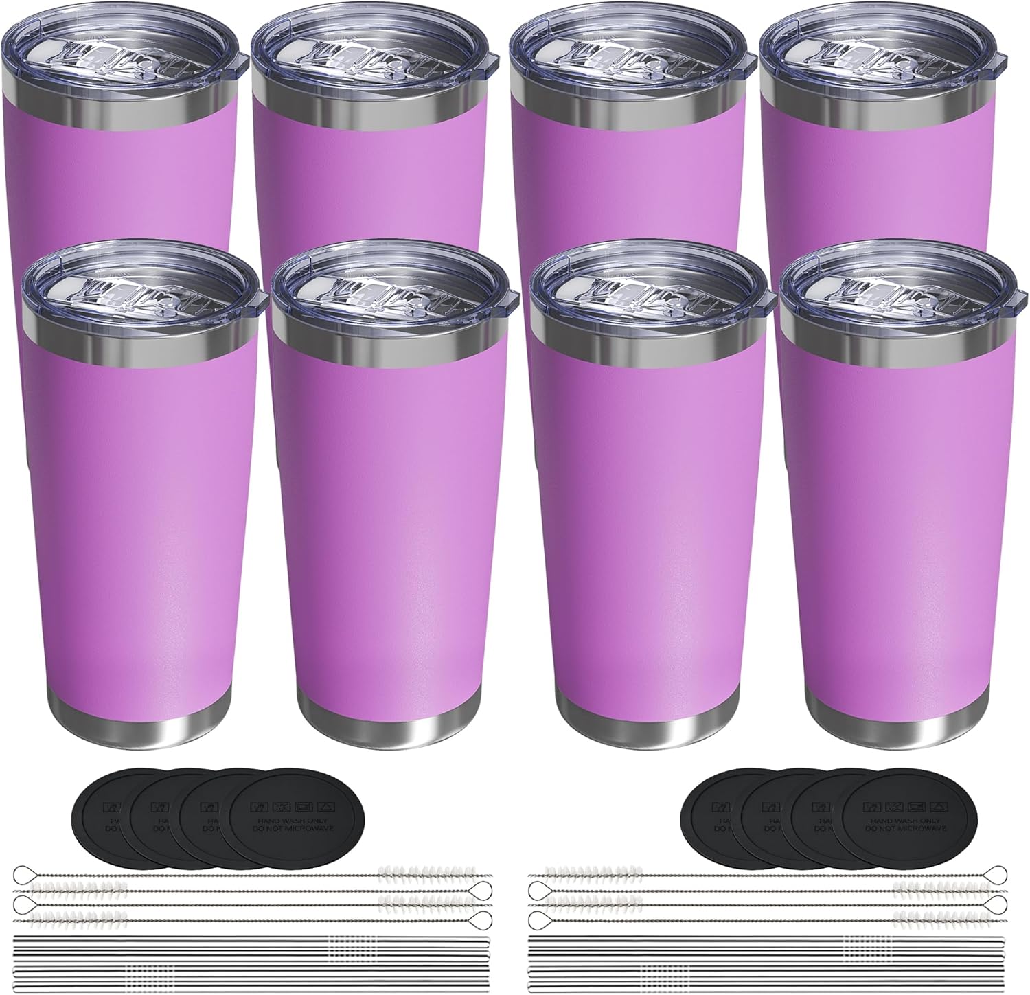 Travel Coffee Tumbler 20oz, 8 Pack Leakproof Travel Coffee Mug with Lid and Straw, Stainless Steel Double Wall Vacuum Insulated Tumbler for Hot/Iced Drinks (Textured Matte, Lilac Pink)