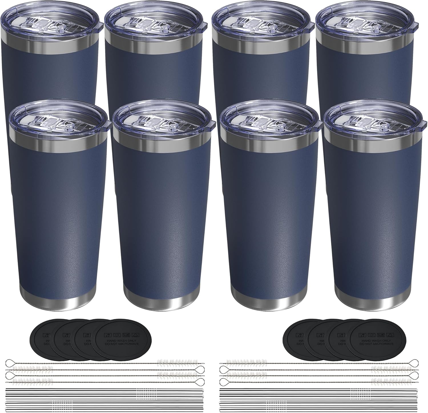Travel Coffee Tumbler 20oz, 8 Pack Leakproof Travel Coffee Mug with Lid and Straw, Stainless Steel Double Wall Vacuum Insulated Tumbler for Hot/Iced Drinks (Textured Matte, Navy Blue)
