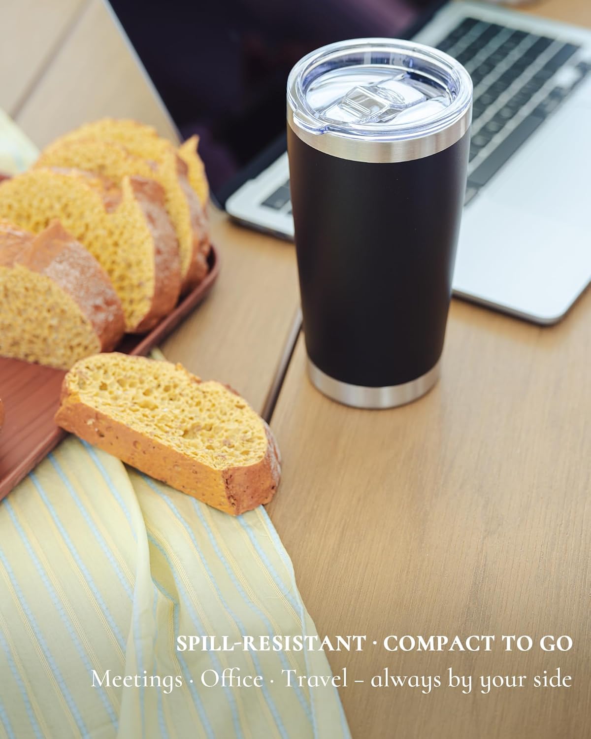 Travel Coffee Tumbler 20oz, 12 Pack Leakproof Travel Coffee Mug with Lid and Straw, Stainless Steel Double Wall Vacuum Insulated Tumbler for Hot/Iced Drinks (Textured Matte, Black)