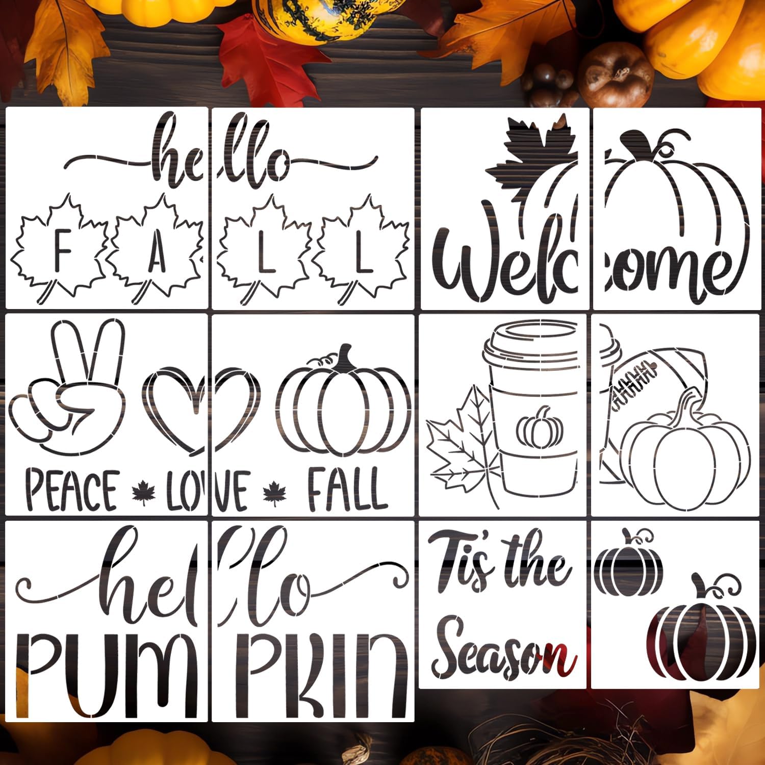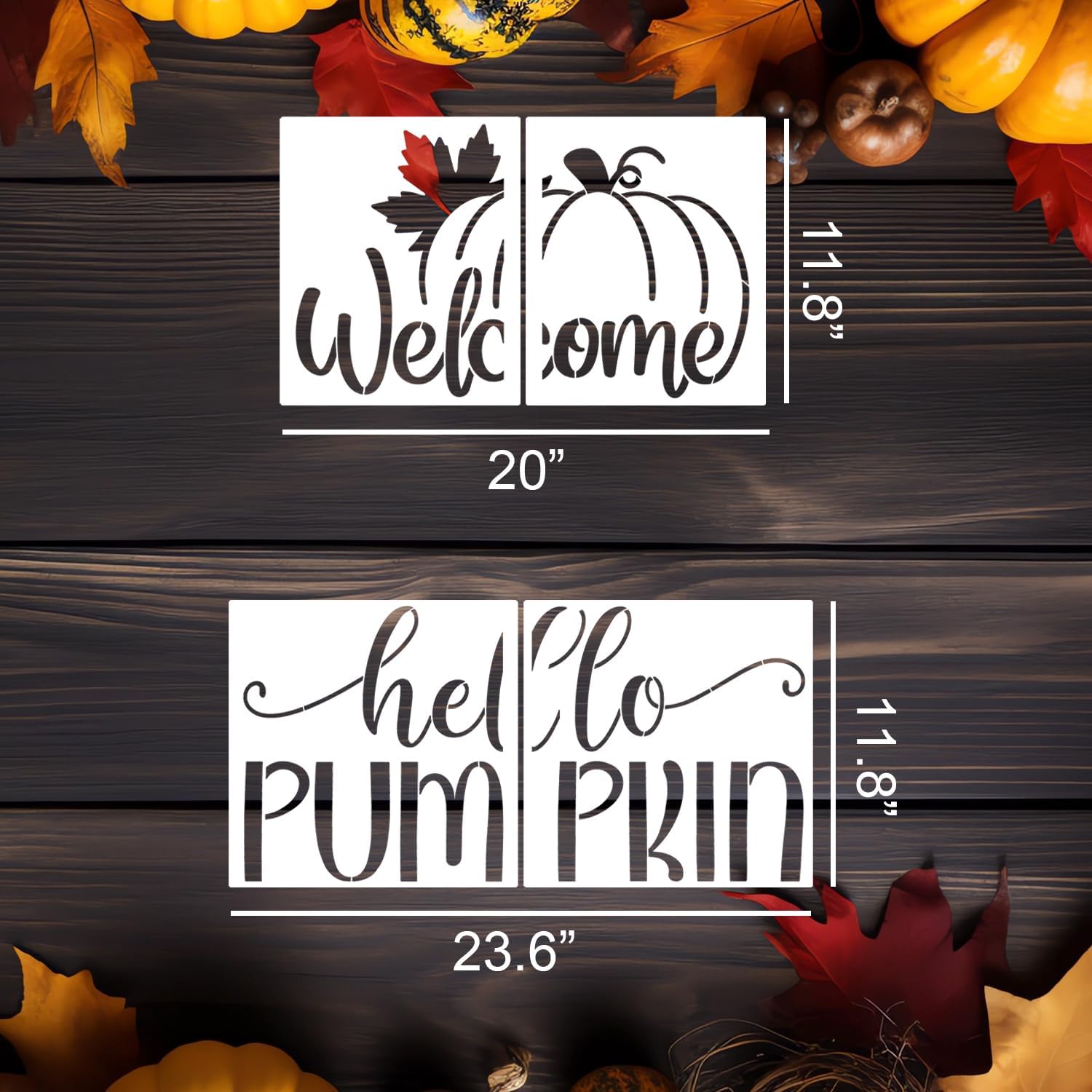 - Package Content:12pcs fall stencils for door mats, the connective fall stencils measure 20x11.8inch and 23.6x11.8inch.