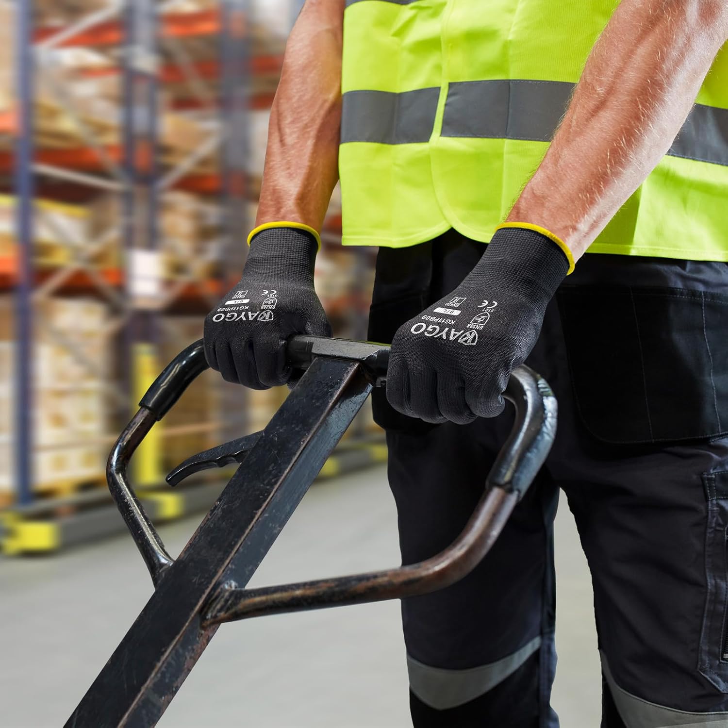 - Excellent Abrasion Resistance: The polyurethane-coated palms and fingertips provide a secure grip in dry and slightly wet/oily conditions while maintaining high dexterity and tactile sensitivity, making them ideal for precise tasks