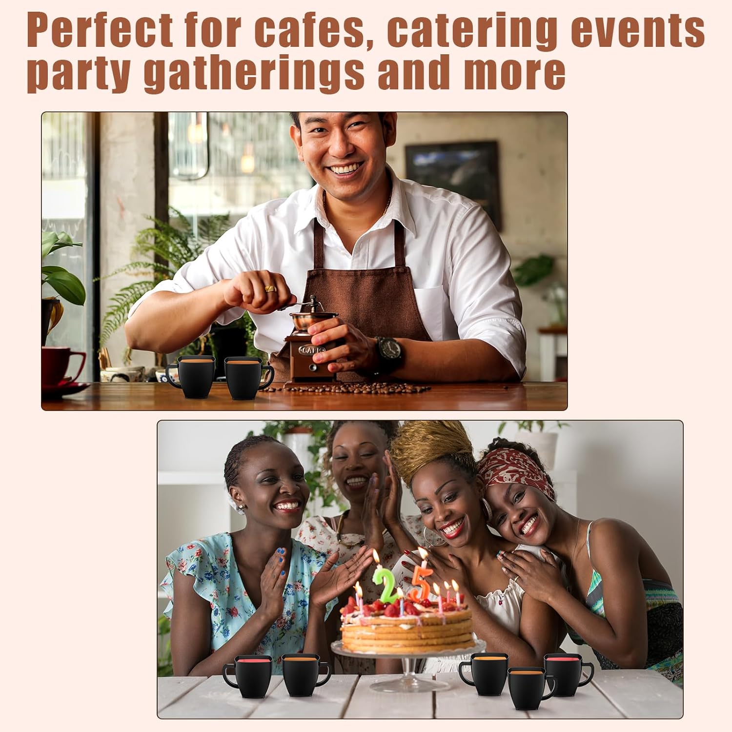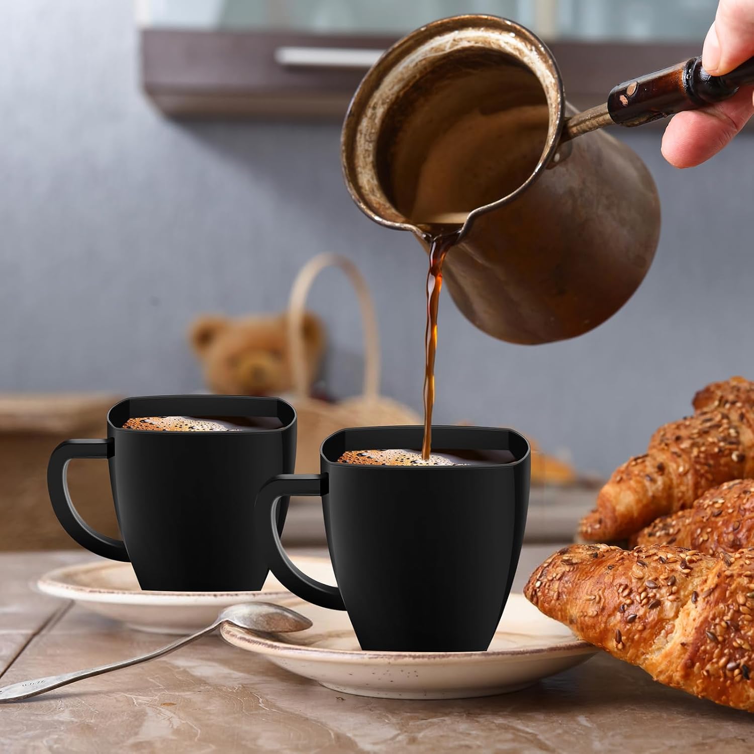 Amyhill 50 Pcs Disposable Tea Cups Mini Plastic Tea Cup Bulk with Handle Hard Plastic Coffee Mug Disposable Square Espresso Mug for Party Catering (Black)