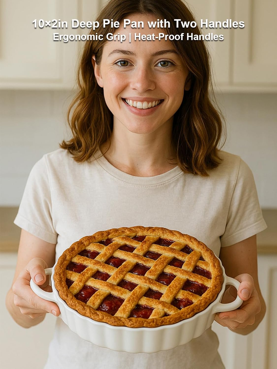 - 【Secure Dual Handles - Ergonomic & Heat-Proof Grip】Featuring sturdy dual handles, this ceramic bakewarenensures safe and comfortable handling. The ergonomic design provides a secure grip, while the heat-proof material protects hands when moving your hot pie pan from oven to table. Serving impressive desserts has never been easier or safer.