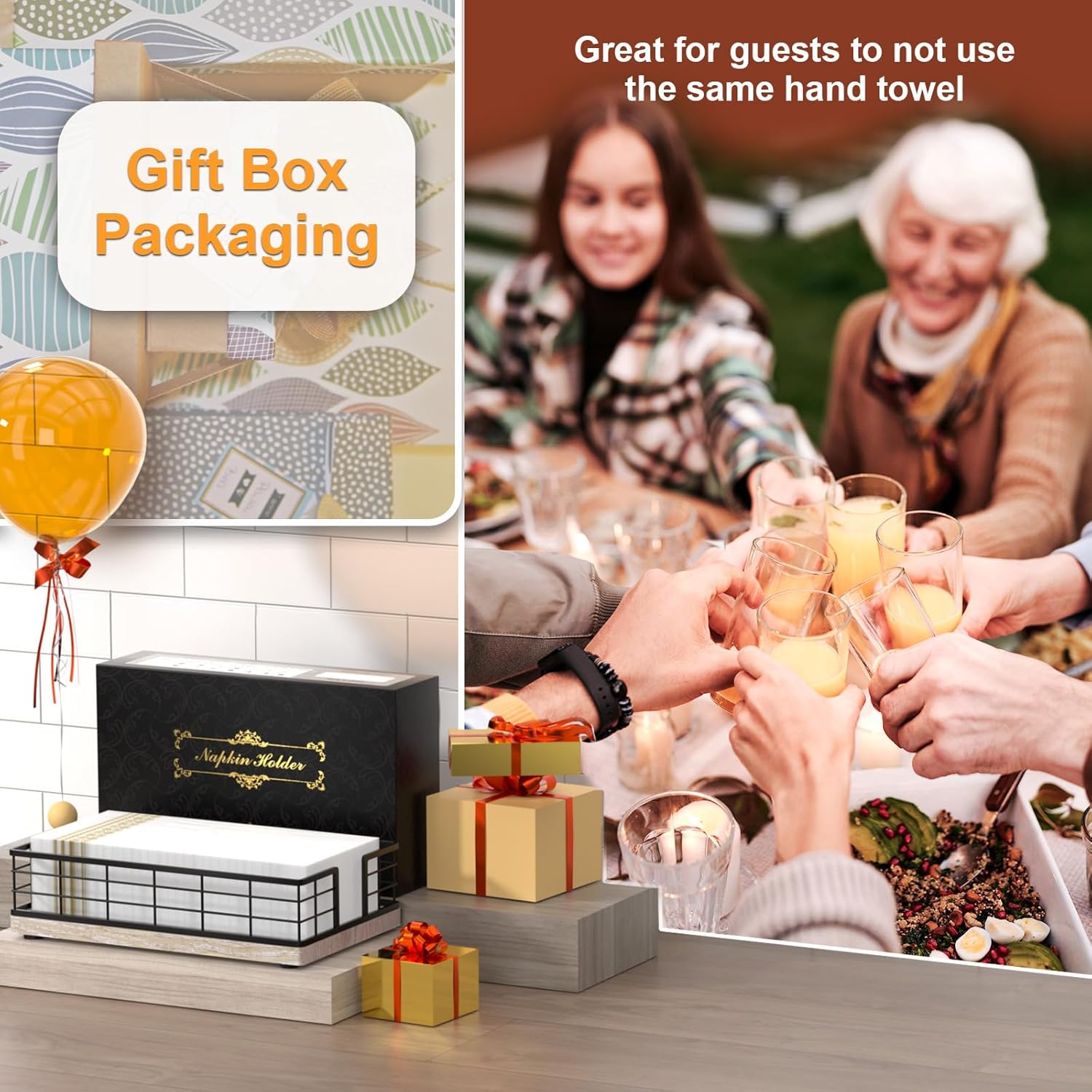 - Quite Versatile: This guest towel holder hold paper towels in the guest bathroom for hand drying; hold paper bath towels for your powder room, easy to retrieve towel when needed; It can also be used as a lunch napkin holder, looking very nice on the dining table