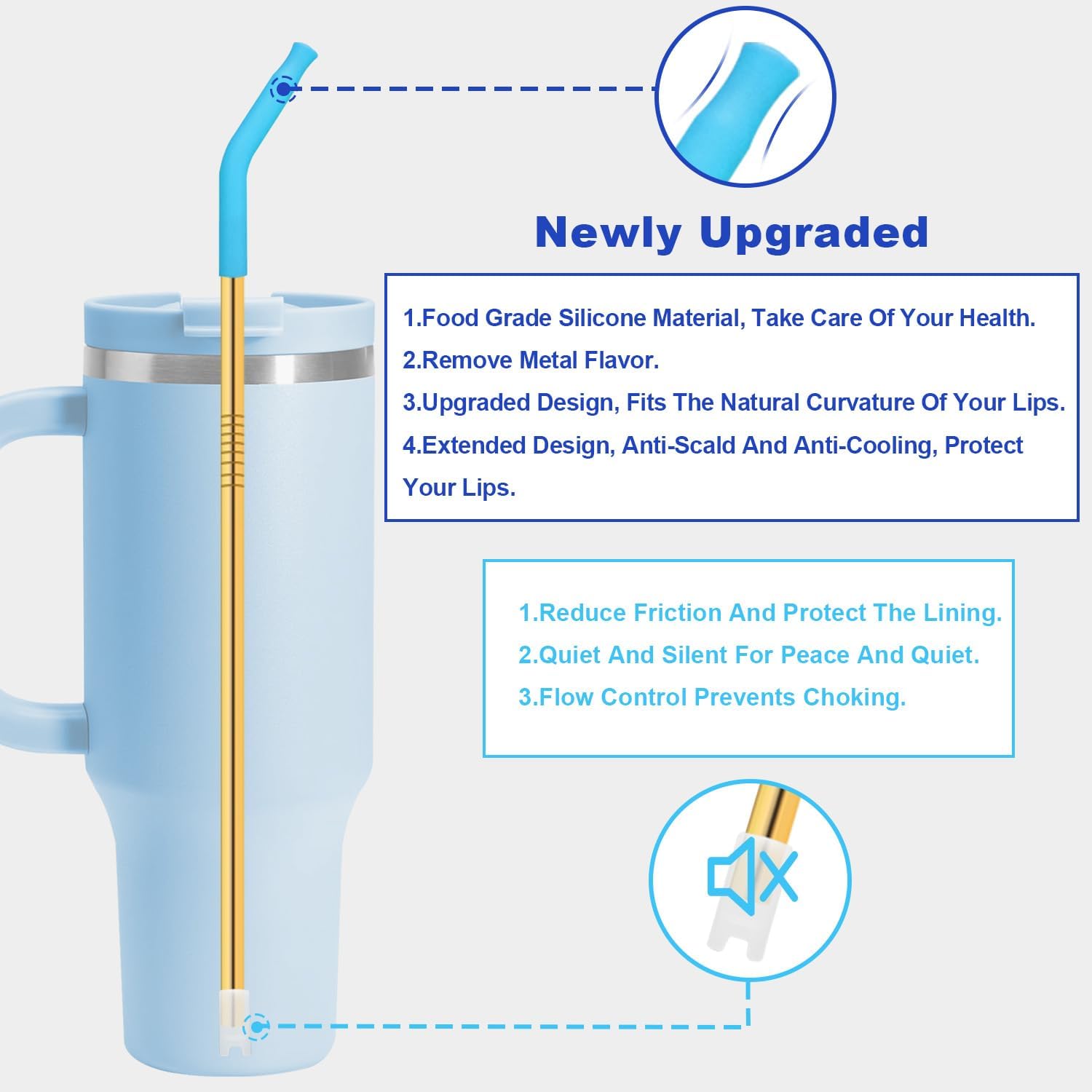 - UPGRADE SILICONE STRAW TIPS :Lengthened Long silicone tip prevents feeling too hot or too cold and protect your mouth from scratched in the same time. The newly upgraded spout is designed to better fit the natural curve of your lips, delivering a superior drinking experience