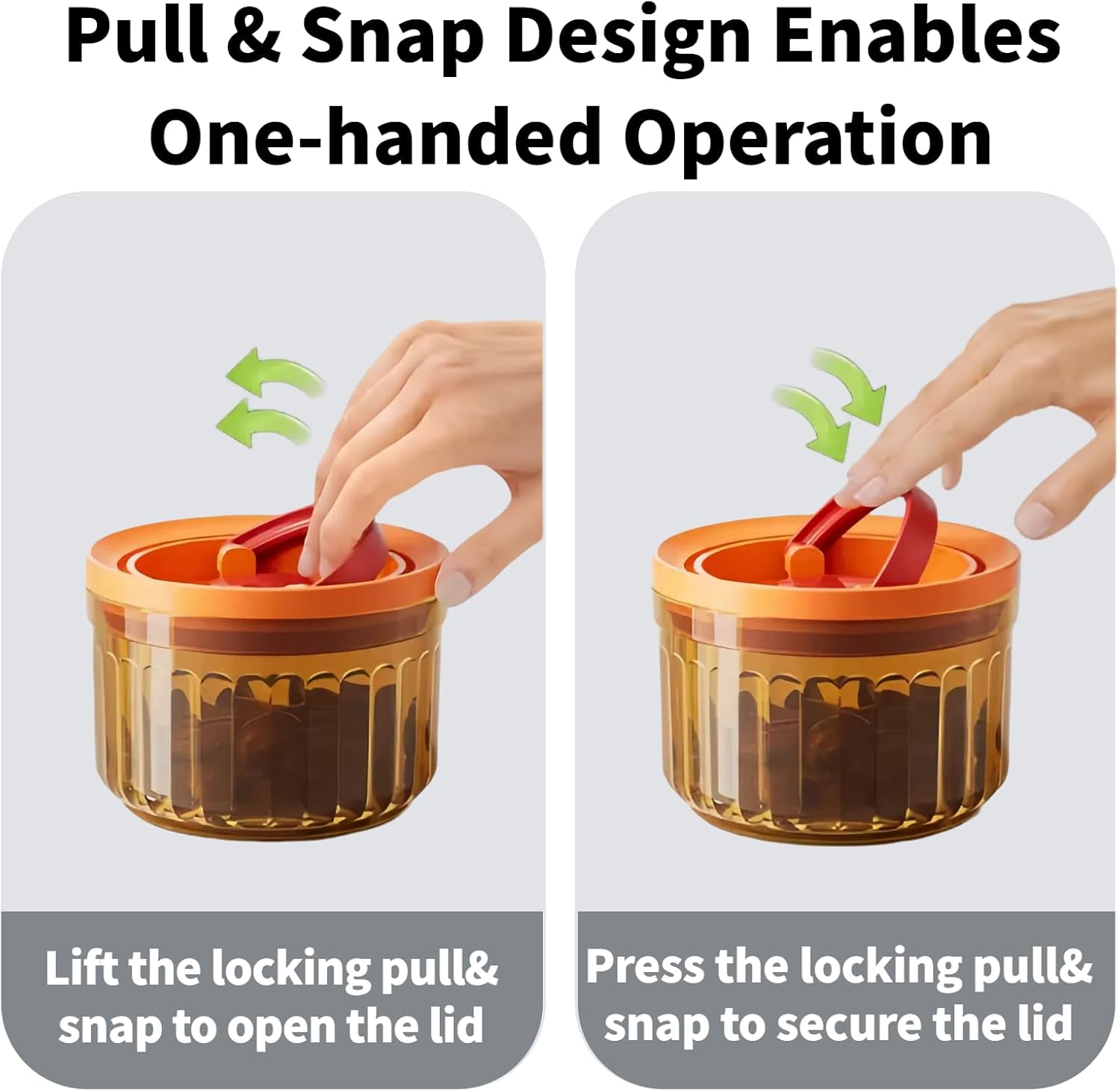 - 3. Advanced Airtight System and Innovative patented Pull&Snap Sealed Design:Open and Close with One Hand,Seal in One Step,free your another hand.Silicone gasket and locking clasp ensure maximum freshness by keeping air and moisture out