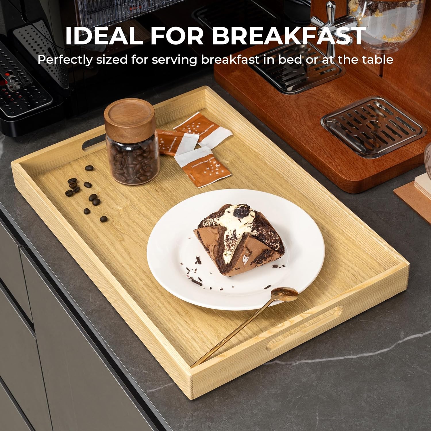 Axeman Wooden Serving Tray with Wood Handles|Ottoman Tray for Breakfast, Bed, Couch|17x12in Ash Wood Coffee Table Trays|Food Drinks Decorative Storage Boards for Ottoman Kitchen, Natural