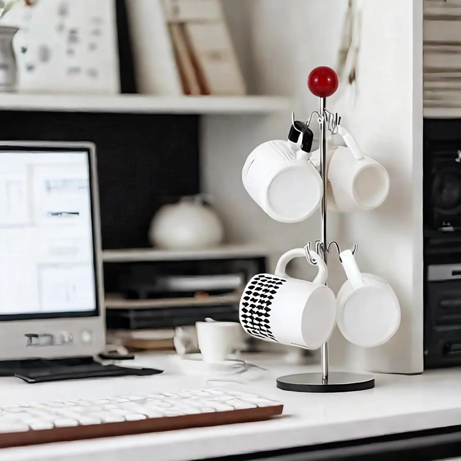 - Stable Round Acrylic Base:A weighted round acrylic base ensures maximum stability in minimal space, preventing tipping even with 6 full mugs.The smooth bottom protects surfaces—no mats needed