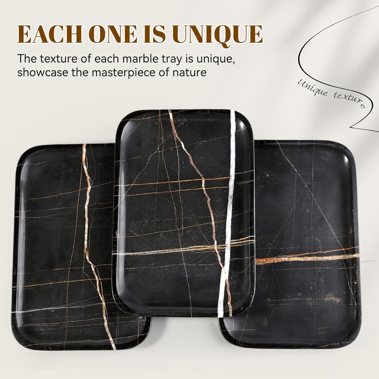Koville Marble Tray, 12"x8" Marble Vanity Tray for Bathroom Kitchen Countertop, Rectangular Stone Tray for Cosmetics Perfume Trinket, Decorative Catchall Trays (Black)