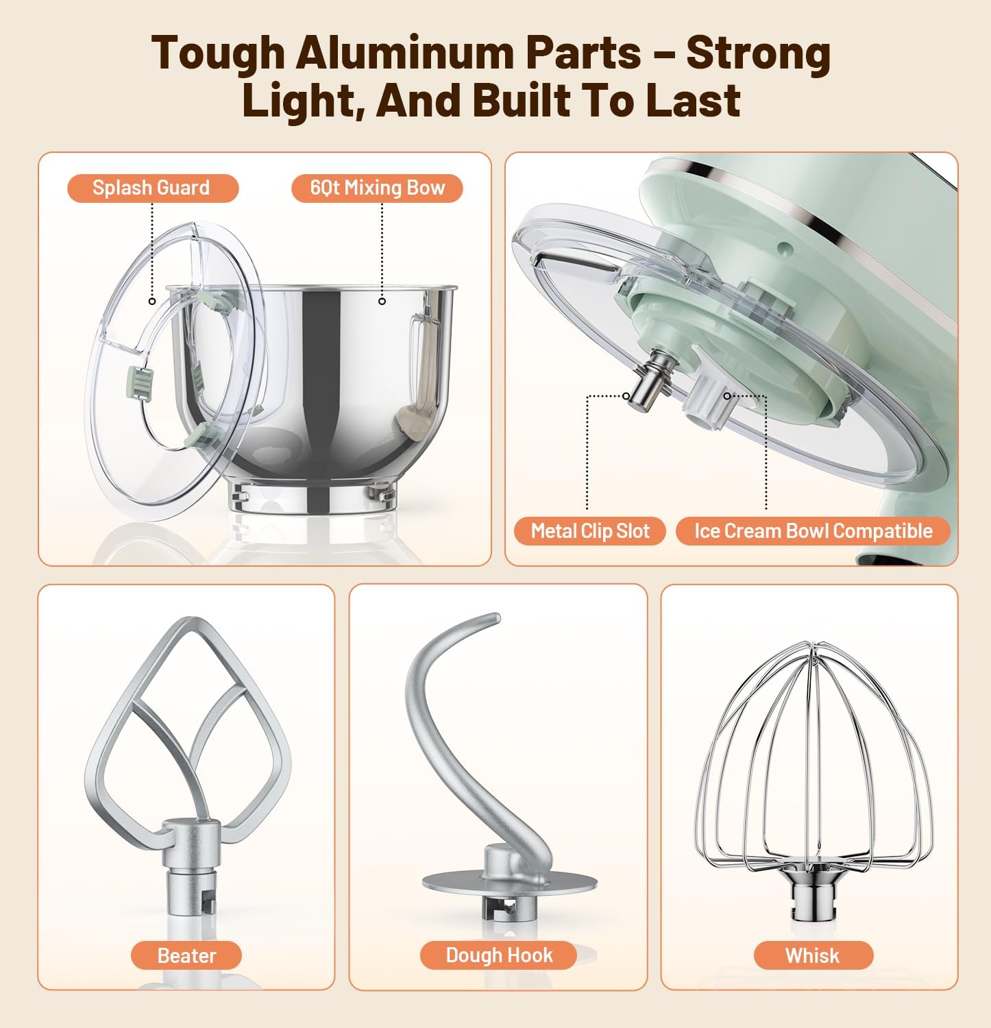 - 【One-Touch Timer】Easily set the mixing time for precise cooking control. Dual button & knob operation allows you to set and go—enjoy your free time while the mixer works automatically. This smart kitchen aid mixer helps you bake efficiently and relax, becoming your reliable assistant in everyday cooking.