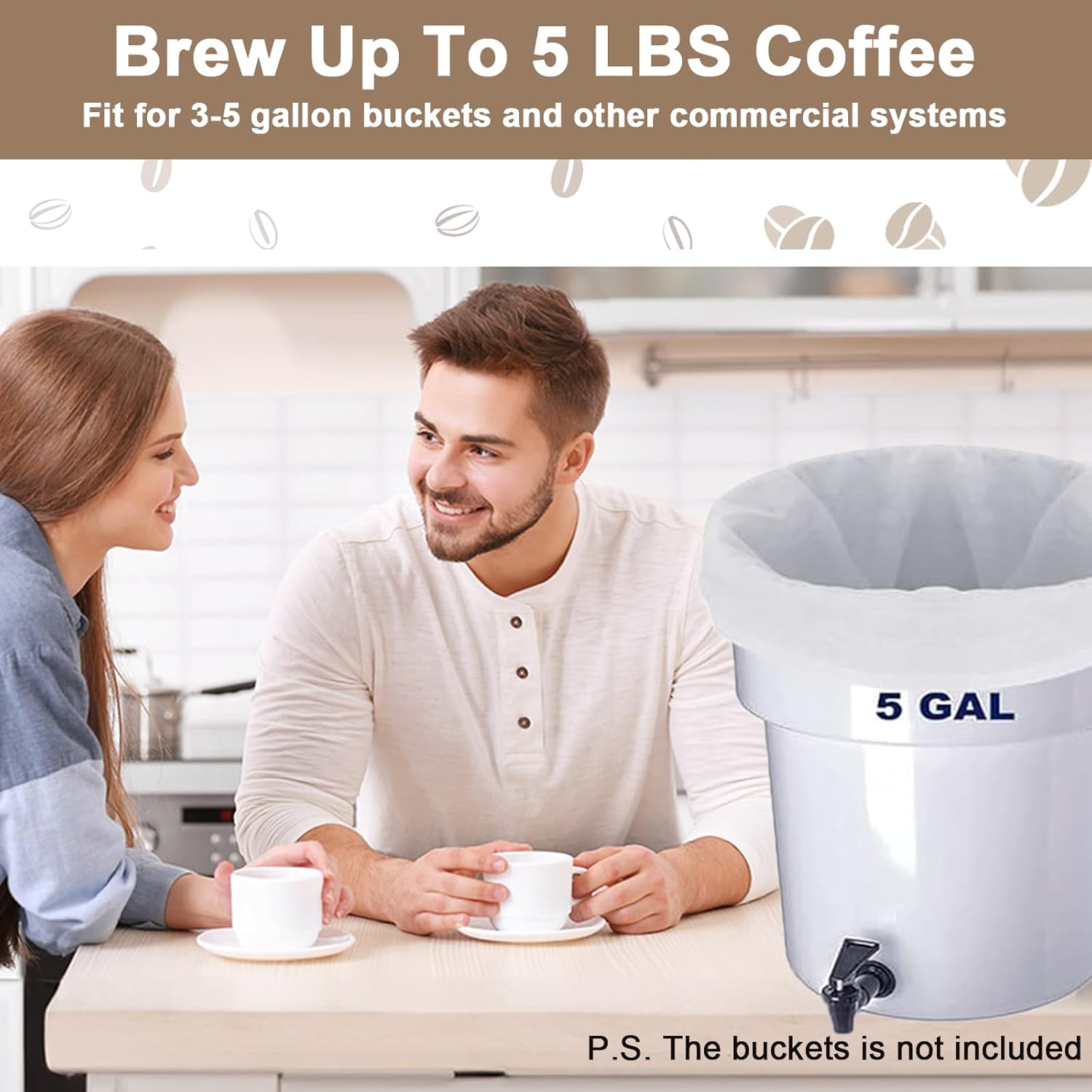 - Extra-Large Capacity: These 20" x 20" commercial coffee filters hold 5 lbs of ground coffee, perfectly fitting 5 gallon buckets for both commercial and home use.
