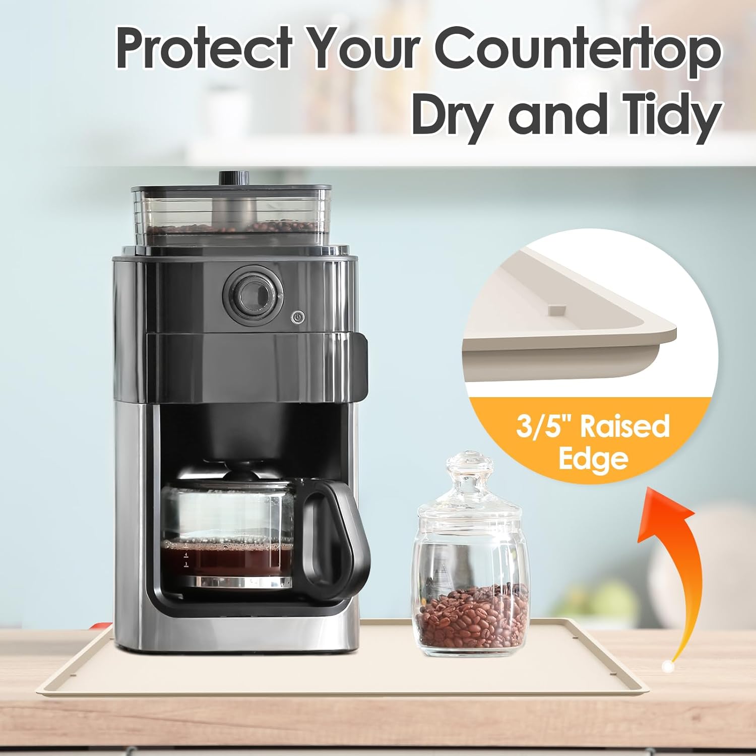 Silicone Coffee Maker Mat with Lip, 19.7'' x 15'' Heavy Duty Coffee Maker Mat for Countertops, Coffee Tray Fit Under Coffee Machine Appliance Automatic Machines Espresso Accessory, Cream White