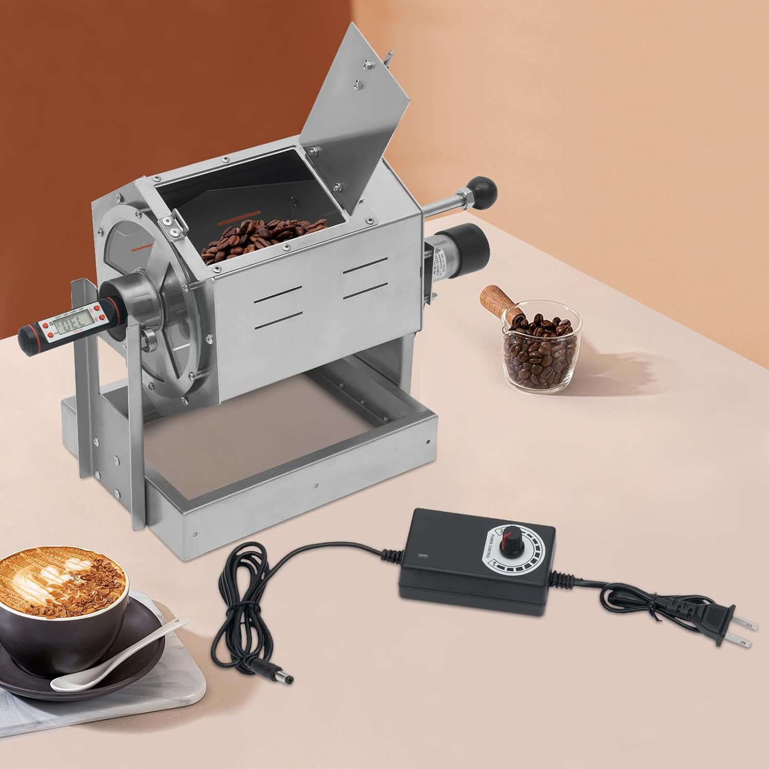 - 【ProfessionalCoffee Bean Roasting Machine】Heavy-duty 304 stainless steel drum + heat-resistant glass window withstands daily roasting. Monitor beans in real-time via the built-in thermometer (-58°F~572°F) to achieve light, medium, or dark roasts.