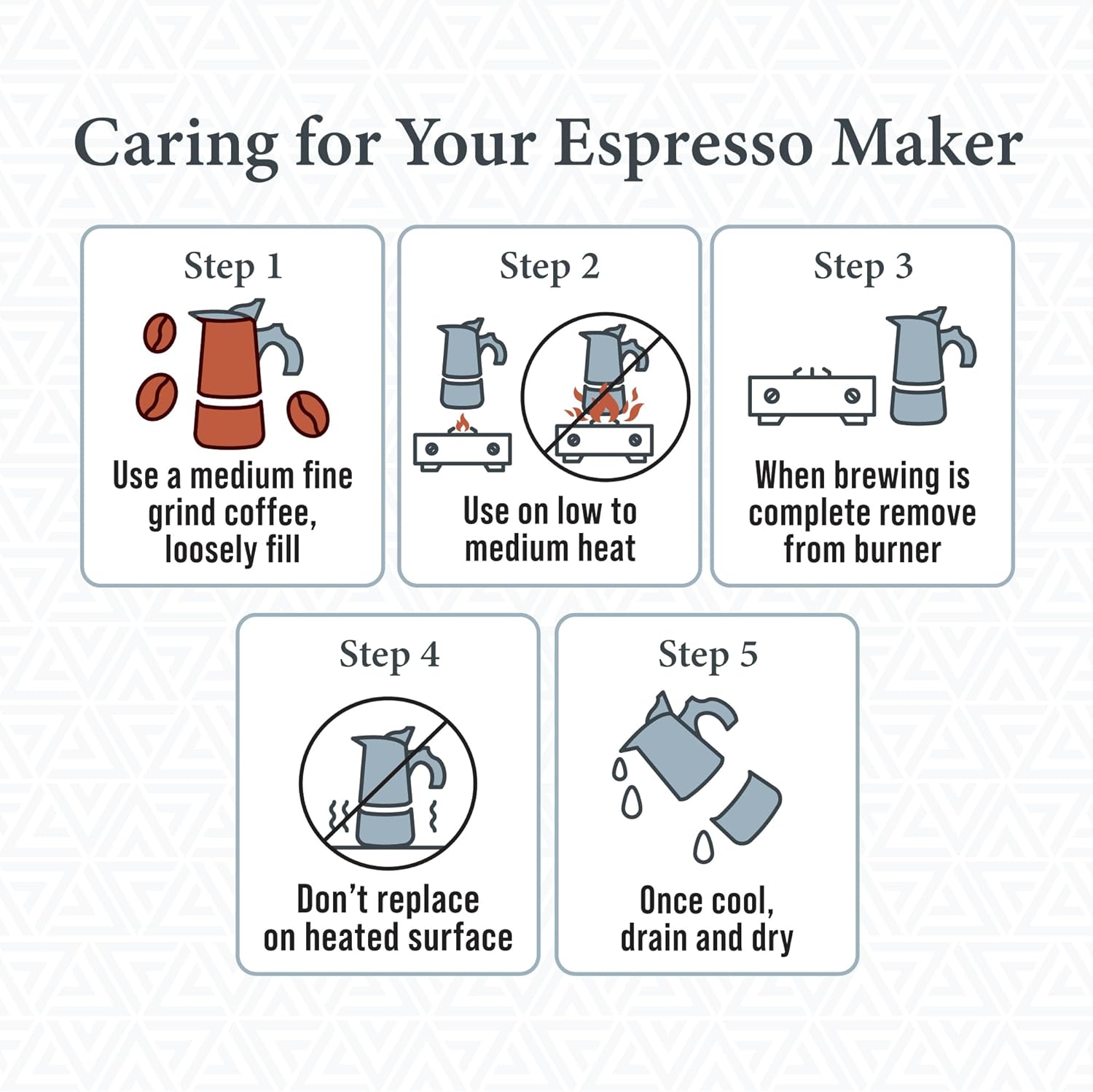 - 3 ESPRESSO CUP CAPACITY: Brew up to 3 demitasse cups (5.07 oz total) of delicious espresso in this stove top coffee maker — ideal for enjoying a strong morning pick-me-up with your favorite beans.