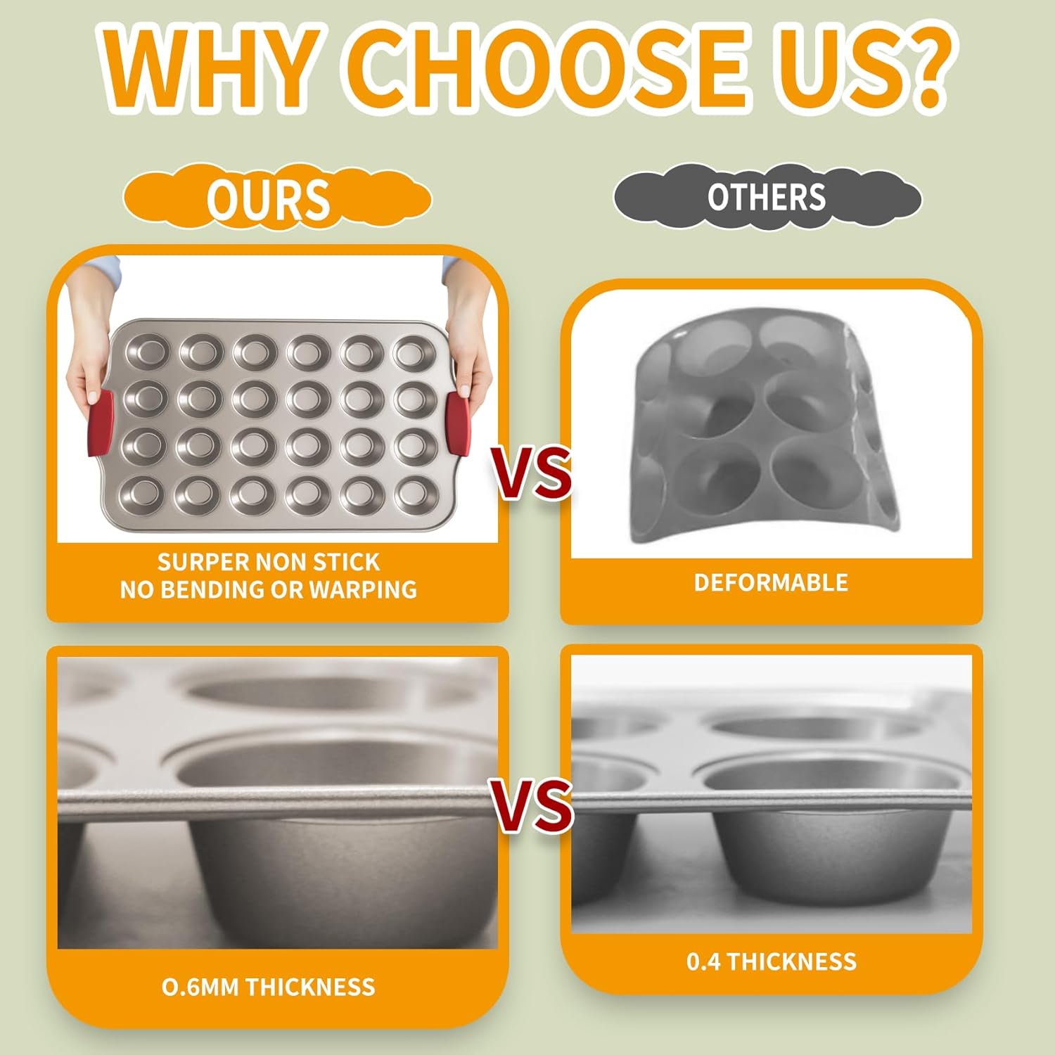 - Space-saving Design - These mini tiny muffin tins nonstick 24 tins features a stackable tray design, making it easy to store. PFOA, PFOS, and PTFE free, it offers a safe and reusable quality kitchenware for baking. Ideal for home and commercial kitchens.