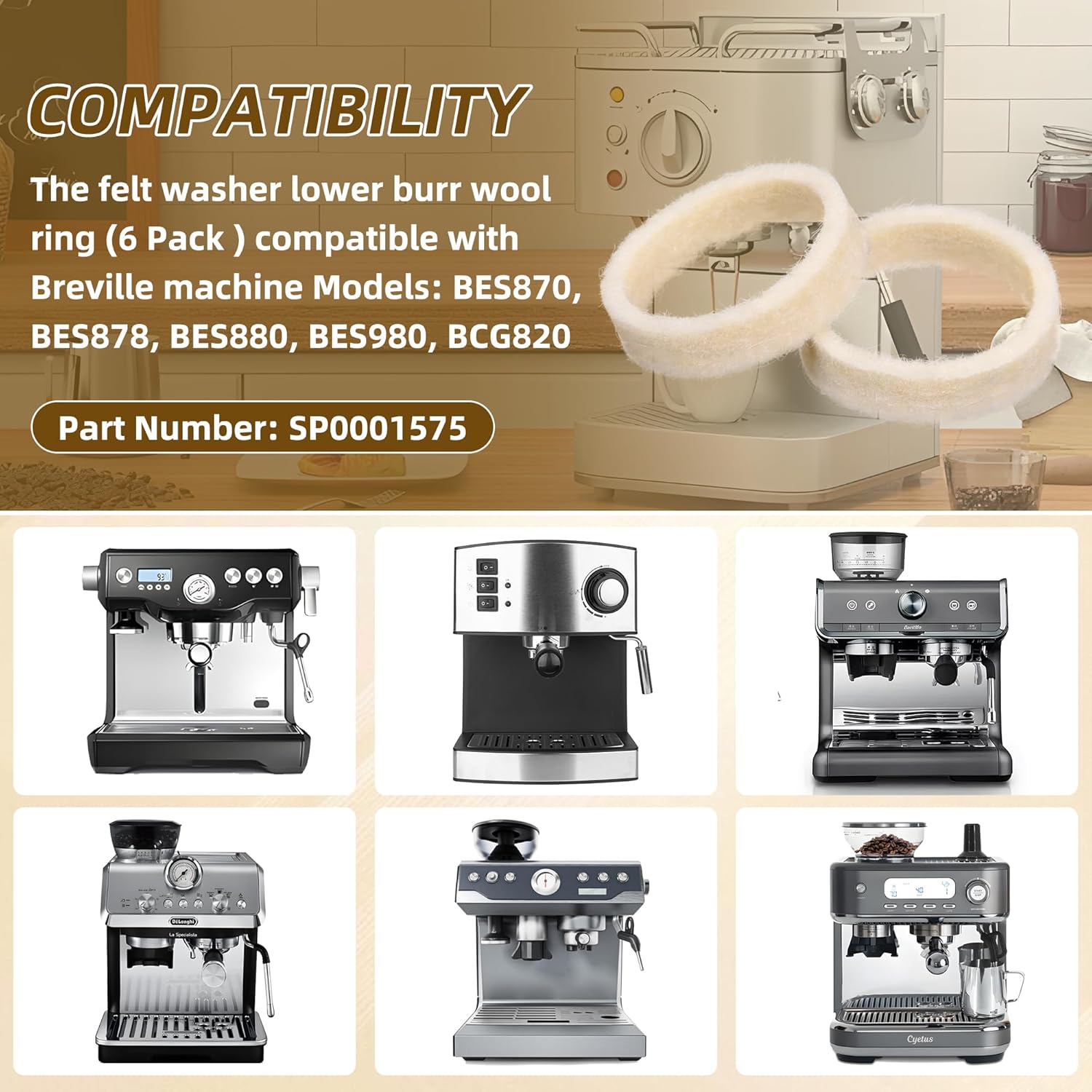 - Compatibility: The felt washer lower burr wool ring (6 Pack ) compatible with kitchen aid Breville machine Models: BES870, BES878, BES880, BES980, BCG820 accessories