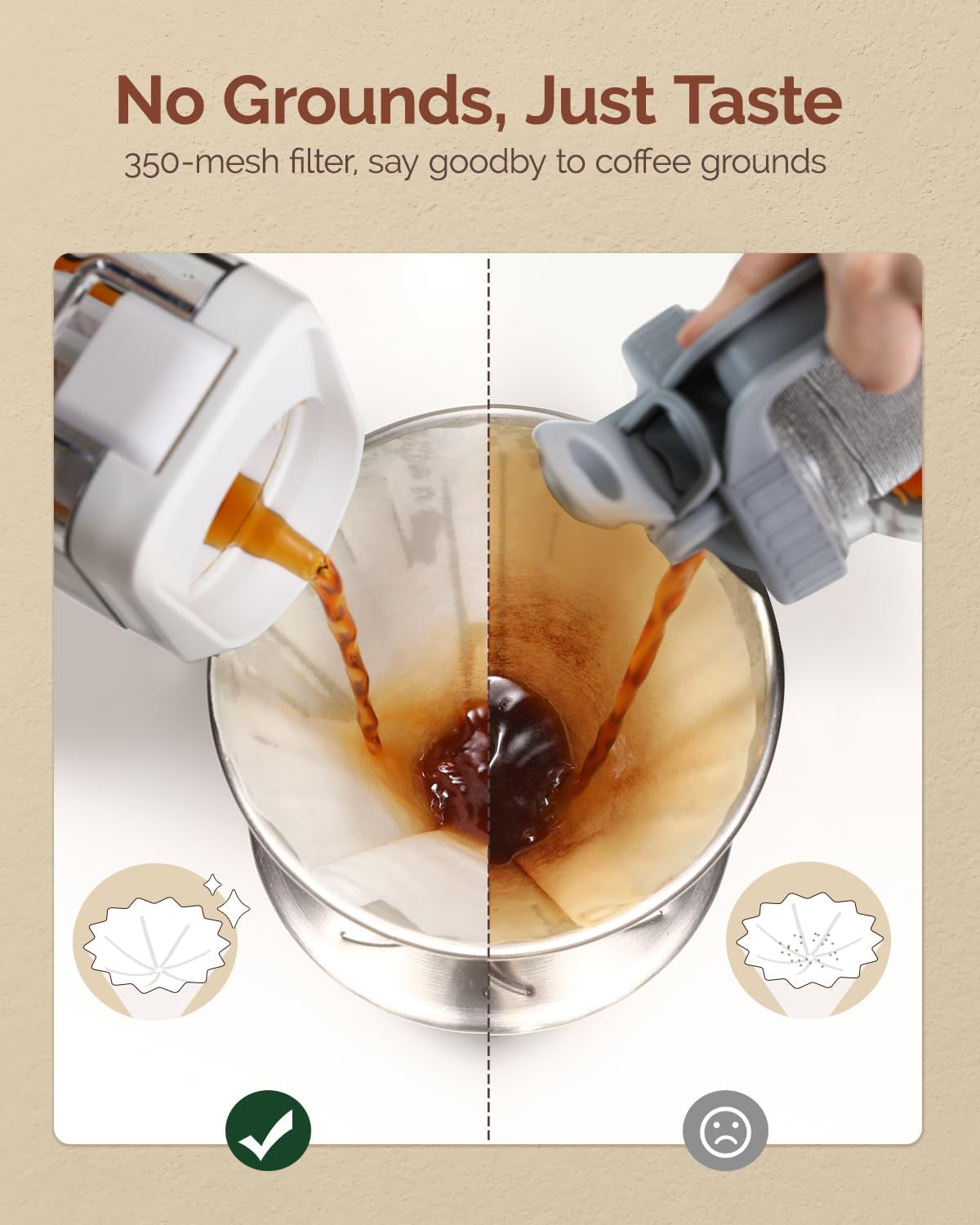 - Enhanced Filtration, Zero Leakage: The 350-mesh ultra-fine filter guarantees a pure coffee experience with no residue. This leak-proof design ensures a sealed brewing process, preserving the authentic flavor of cold brew coffee.