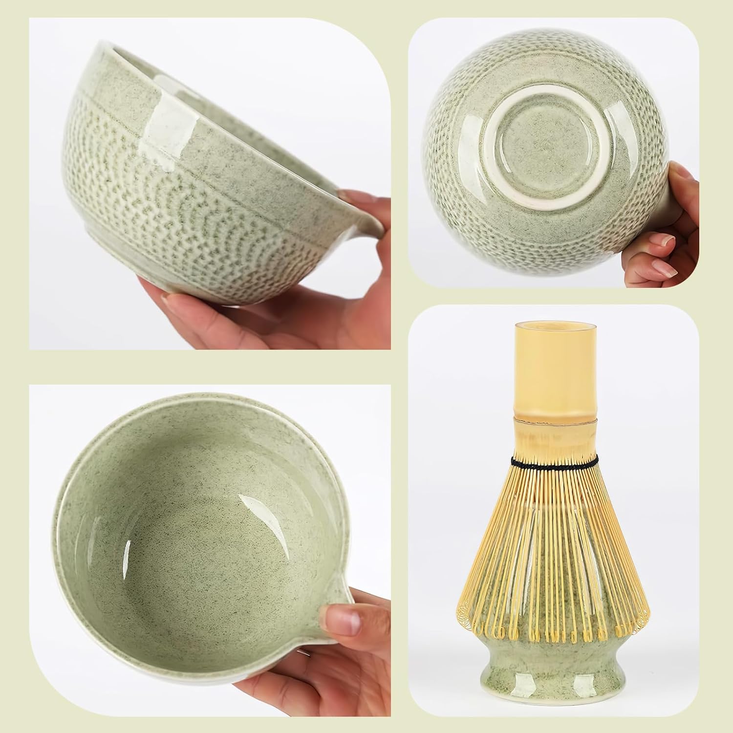 - Matcha Set: Our matcha whisk set meets all your needs for making matcha, including a ceramic matcha bowl, a bamboo matcha whisk, a stainless steel sifter, a bamboo scoop, and a matcha whisk holder. Each accessory is meticulously designed and crafted, perfectly blending traditional and modern styles, allowing you to experience a relaxed and fashionable matcha lifestyle.