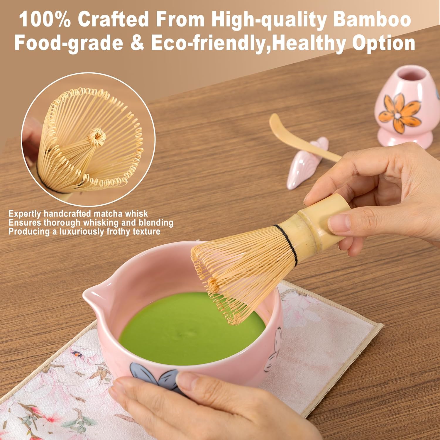 - 【★8pcs Matcha Whisk Set】Our matcha bowl and whisk set includes essentials for an authentic matcha experience:1 x 500 ml/17 oz Ceramic Matcha Bowl,1 x Bamboo Matcha Whisk,1 x Bamboo Scoop,1 x Stainless steel sifter,1 x Ceramic Stand,1 x Ceramic Holder,1 x Tea Towel,1 x Spoon.Each tool is crafted with precision,designed to make your matcha lifestyle effortlessly stylish,suitable for both seasoned enthusiasts and beginners.