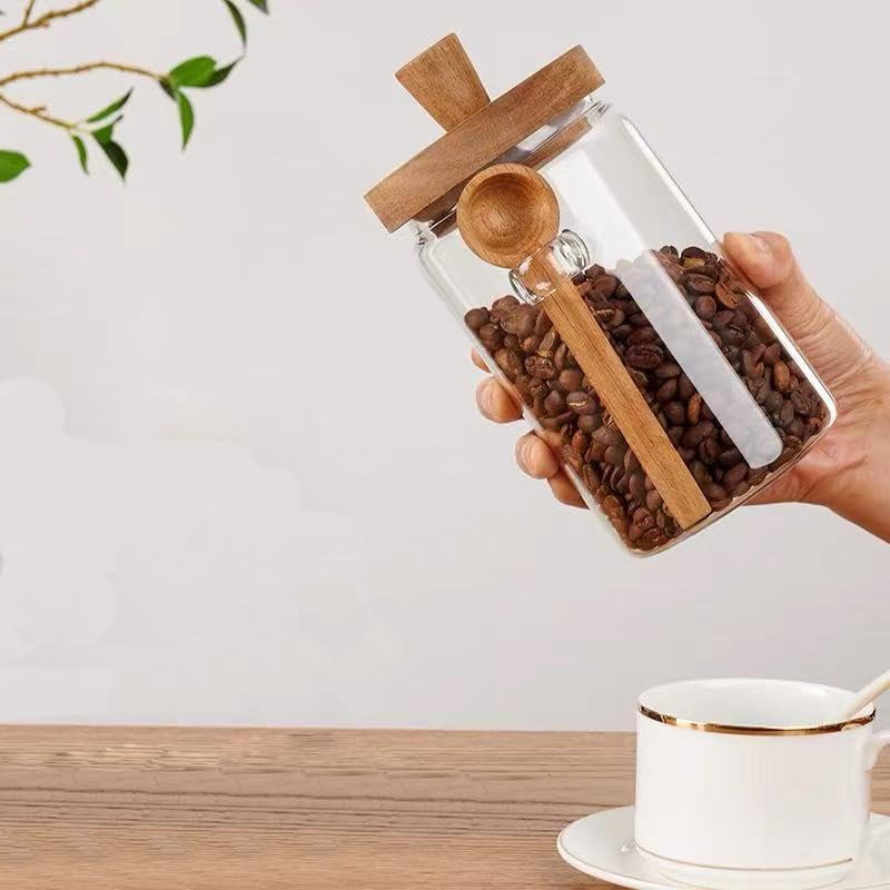 - Clear Glass Canisters: The package comes with the glass canisters with wooden lids and spoons,750ml/25 oz, 9 x 15 cm/ 3.54 x 5.9 inches, which are useful for you for organizing and storing powdery and granular food in kitchen, like coffee beans, teas, spices, and more