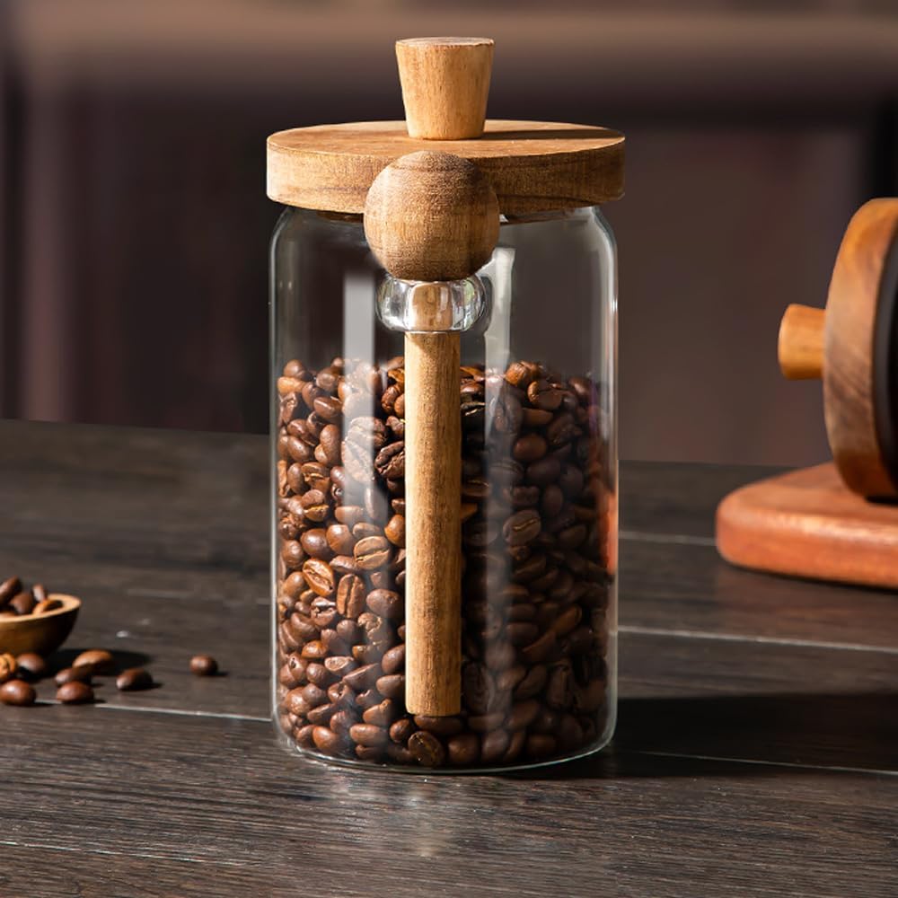 - Glass Jars with Wooden Lid & Built-in Spoon: The Glass Jars integrated spoon holder keeps your spoon clean, organized, and always within reach—no more searching through drawers! Just lift the spoon from its dedicated slot for quick, mess-free access to ingredients. In addition, the lids are easy-grip handle for comfortable opening and airtight freshness.