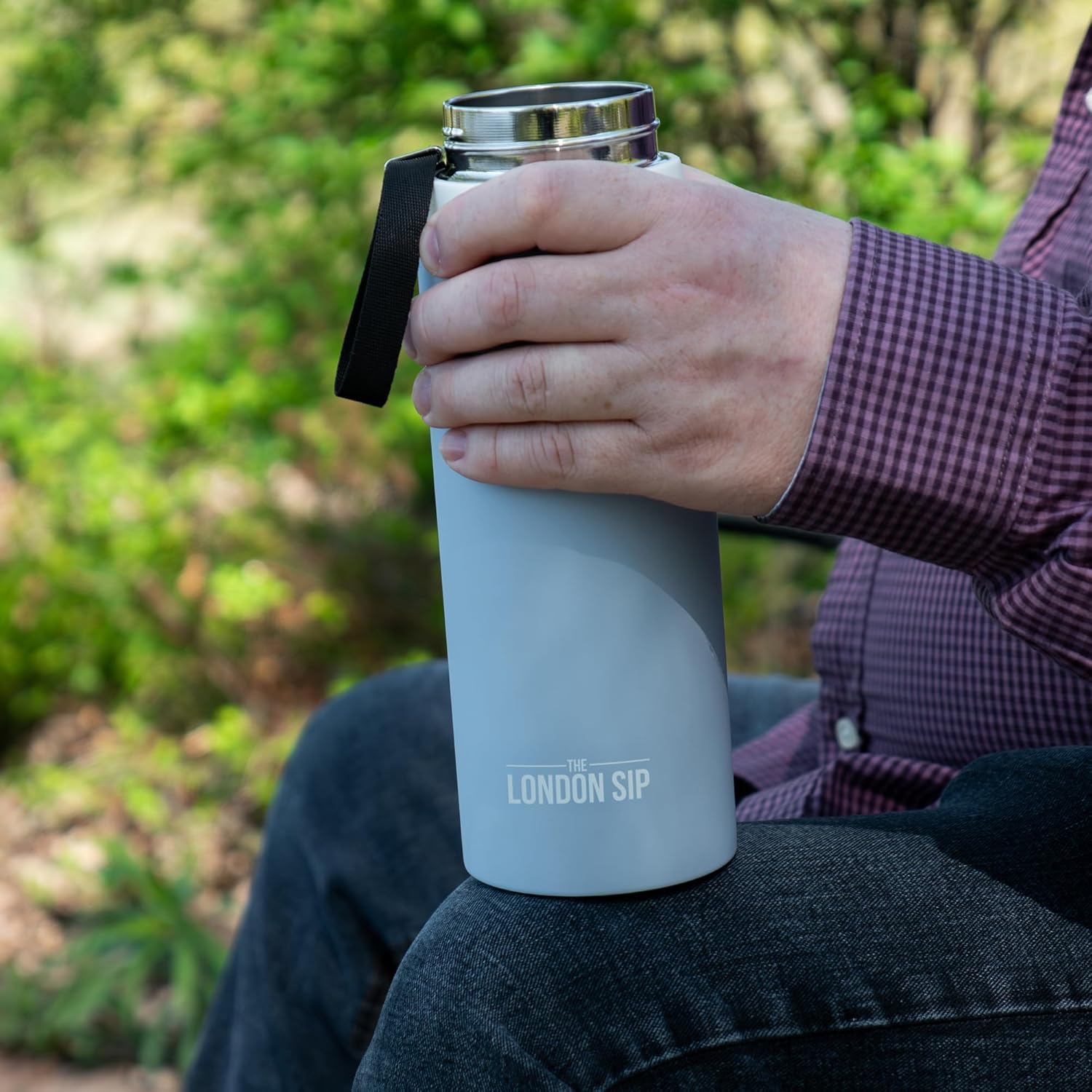 London Sip 25 oz Multi-Purpose Tea Infuser Mug – Fruit Infuser Water Bottle for Hot and Cold – Double Wall Stainless Steel Insulated, Blue Sunrise