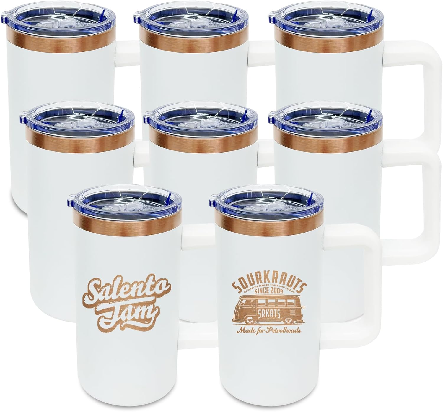 20 oz Insulated Coffee Mug with Lid, 8 Pack Stainless Steel Coffee Tumbler Bulk, Double Wall Vacuum Travel Mug with Handle, Leakproof Powder Coated Coffee Cups for Hot and Cold Drinks (White,8 pack)