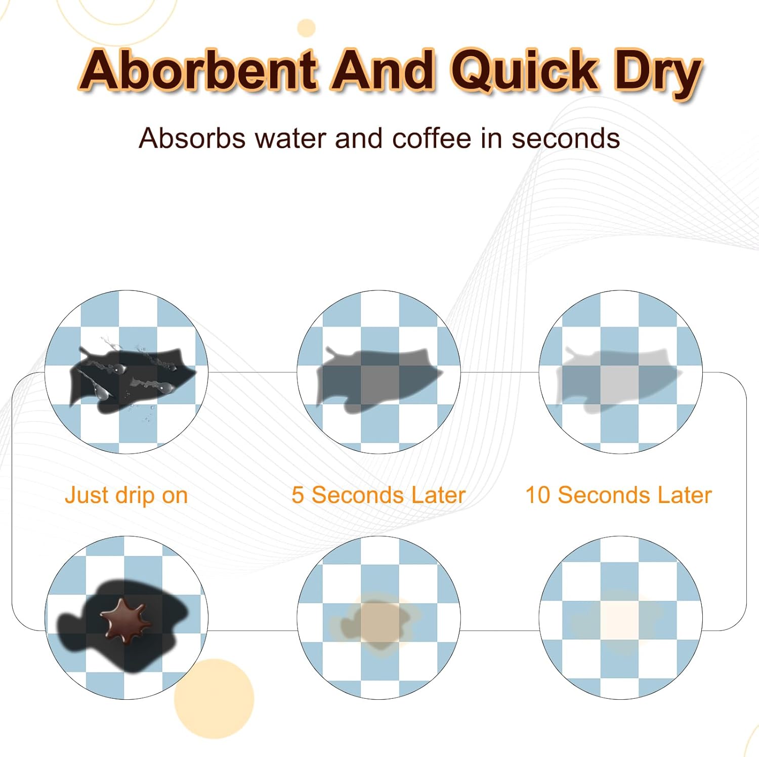 - Checkered Stain-Resistant & Durable Design: This coffee bar mat made of PU material and diatomaceous earth for superior stain resistance. Effortlessly hides coffee spills, milk splatters, and other messy stains without frequent wiping. The coffee machine mat is highly durable construction ensures long-term reuse, even in busy environments.