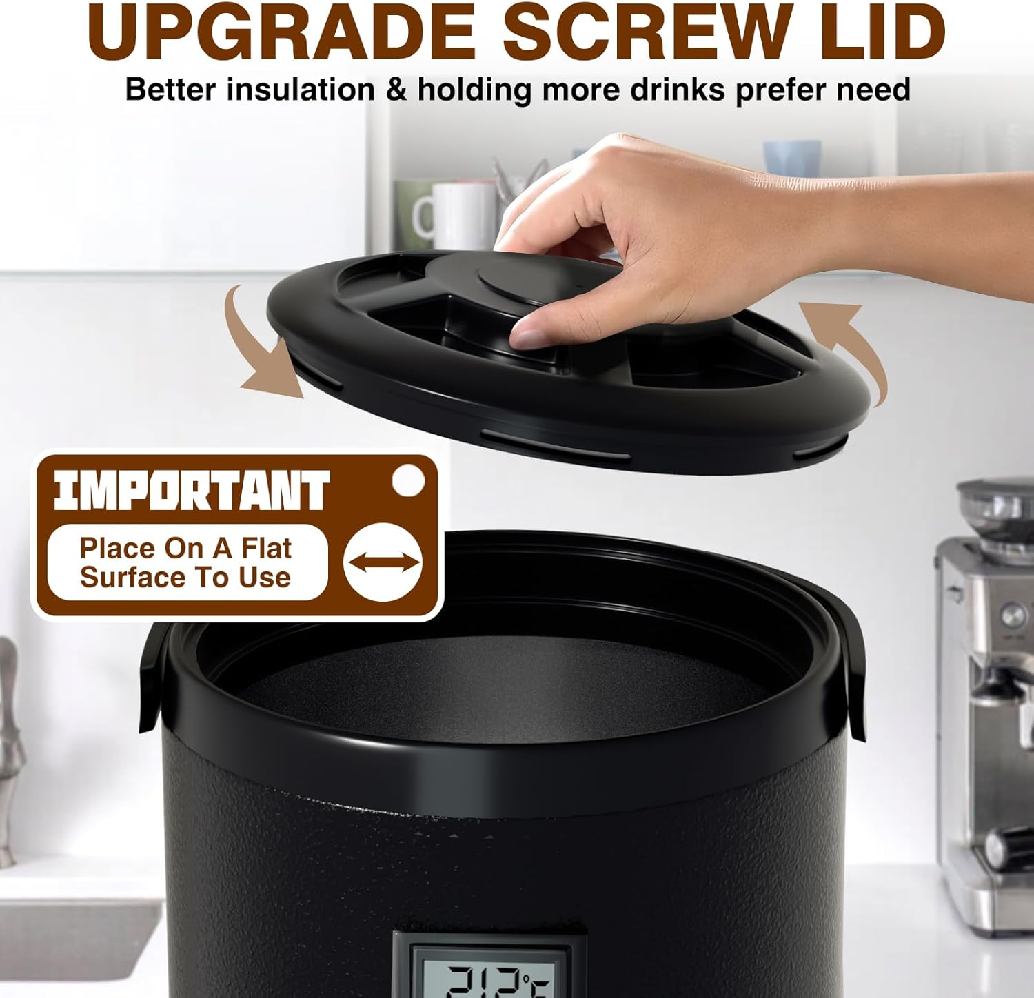 - SUPERIOR THERMAL RETENTION: It is a NON-HEATING FUNCTIONAL insulated beverage dispenser. It utilizes triple-layer PU foam insulation and a double-walled lid to prevent heat transfer or cold air escape, effectively keeping hot and cold drinks at the desired temperature for over 12 hours.