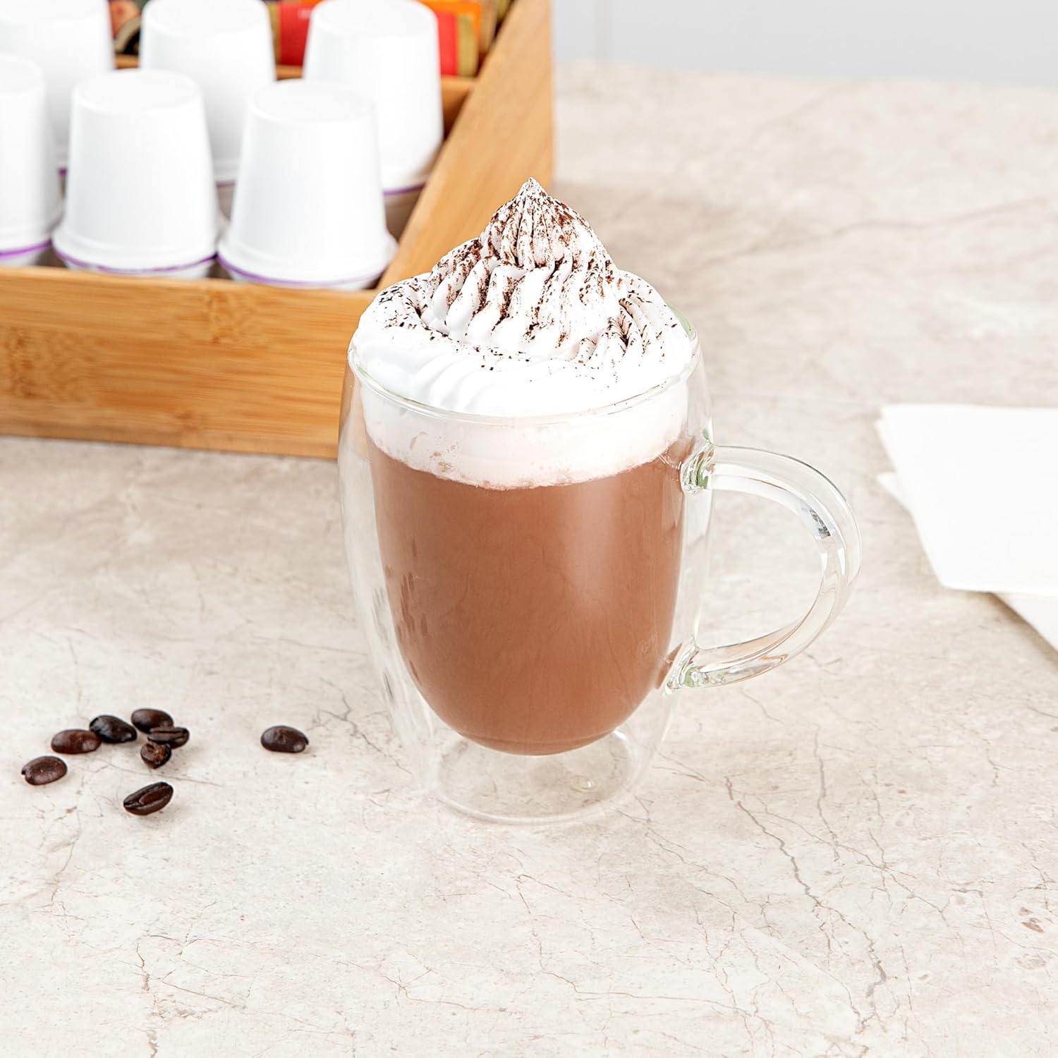 Restaurantware-Forma Professional 11.8 Ounce Glass Coffee Cups, 2 Insulated Coffee Cups With Handle - Dishwashable, Reusable, Clear Double Wall Beverage Tumblers, Freezable, For Hot Or Cold Beverages