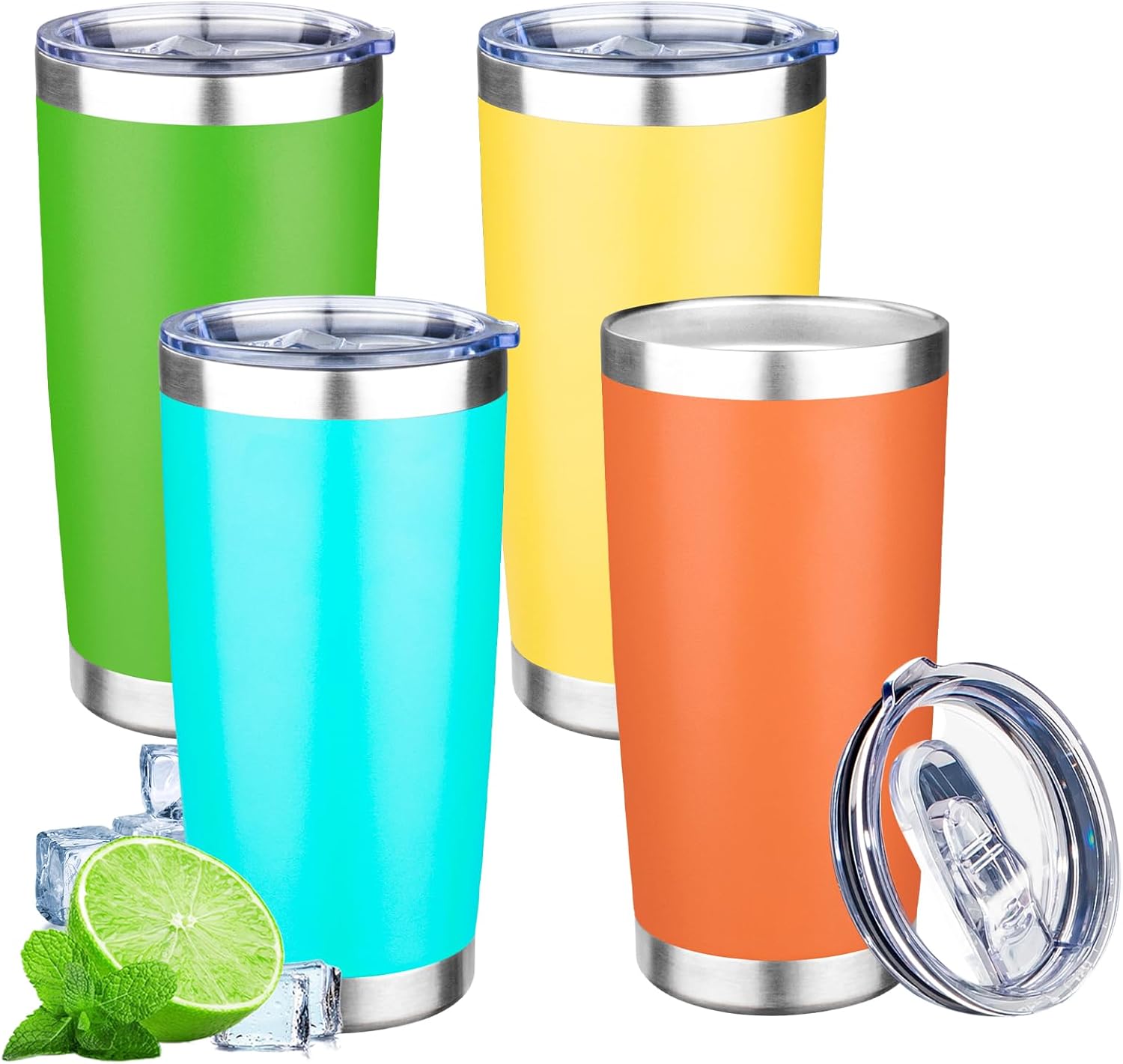 20oz Tumbler with Lid Double Wall Vacuum Insulated Travel Coffee Mug Stainless Steel Thermal Cup Powder Coated Sturdy Coffee Tumbler Bulk for Hot and Cold Beverages (Green-Teal-Orange-Yellow,4)