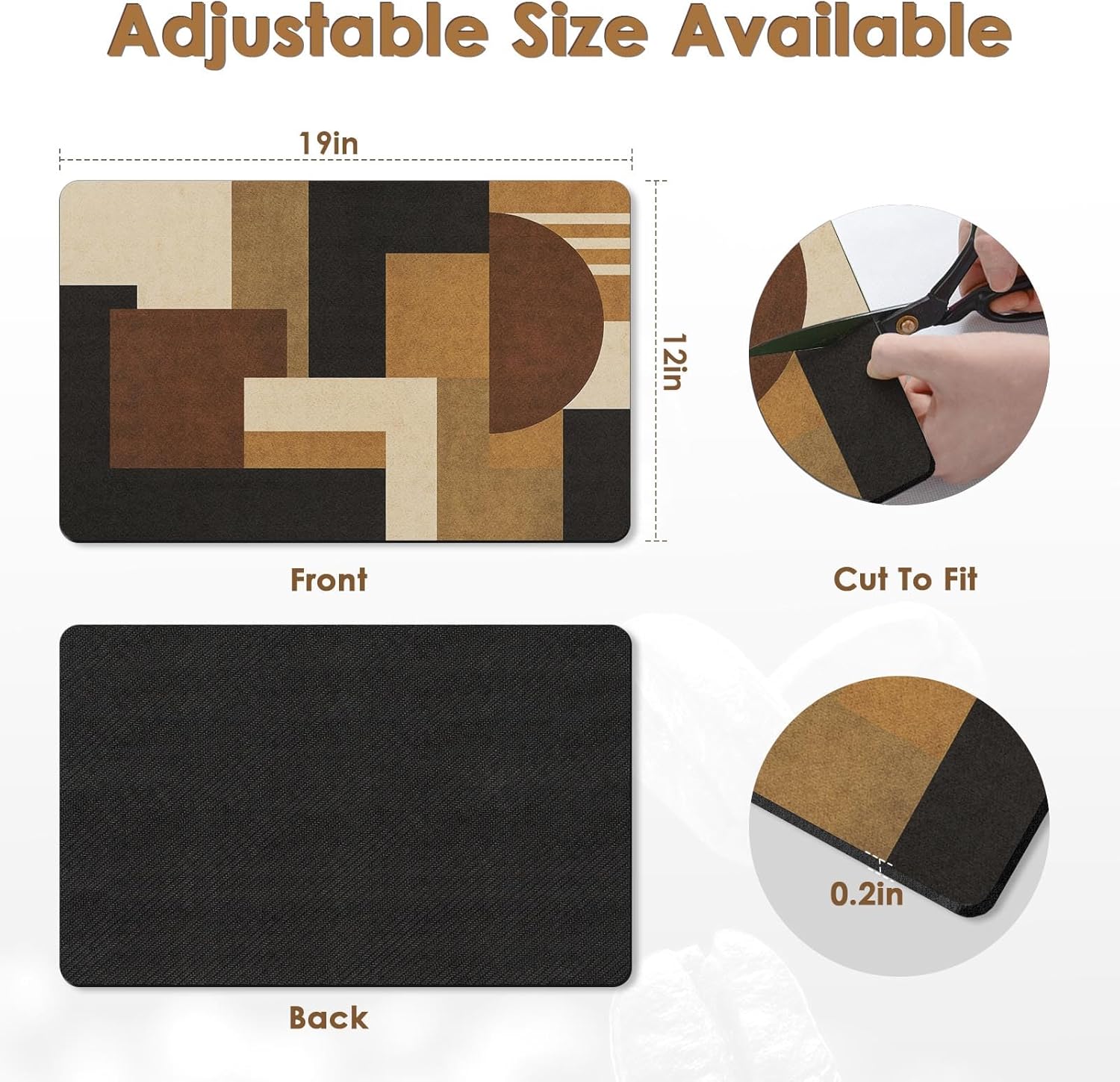 Arttown Coffee Mat for Countertops, Retro Ethnic Geometric Modern Black Brown Dish Drying Mat 2 Pcs for Kitchen Bar Accessories, Coffee Maker Espresso Machine Dish Rack Hide Stain Rubber 12x19in