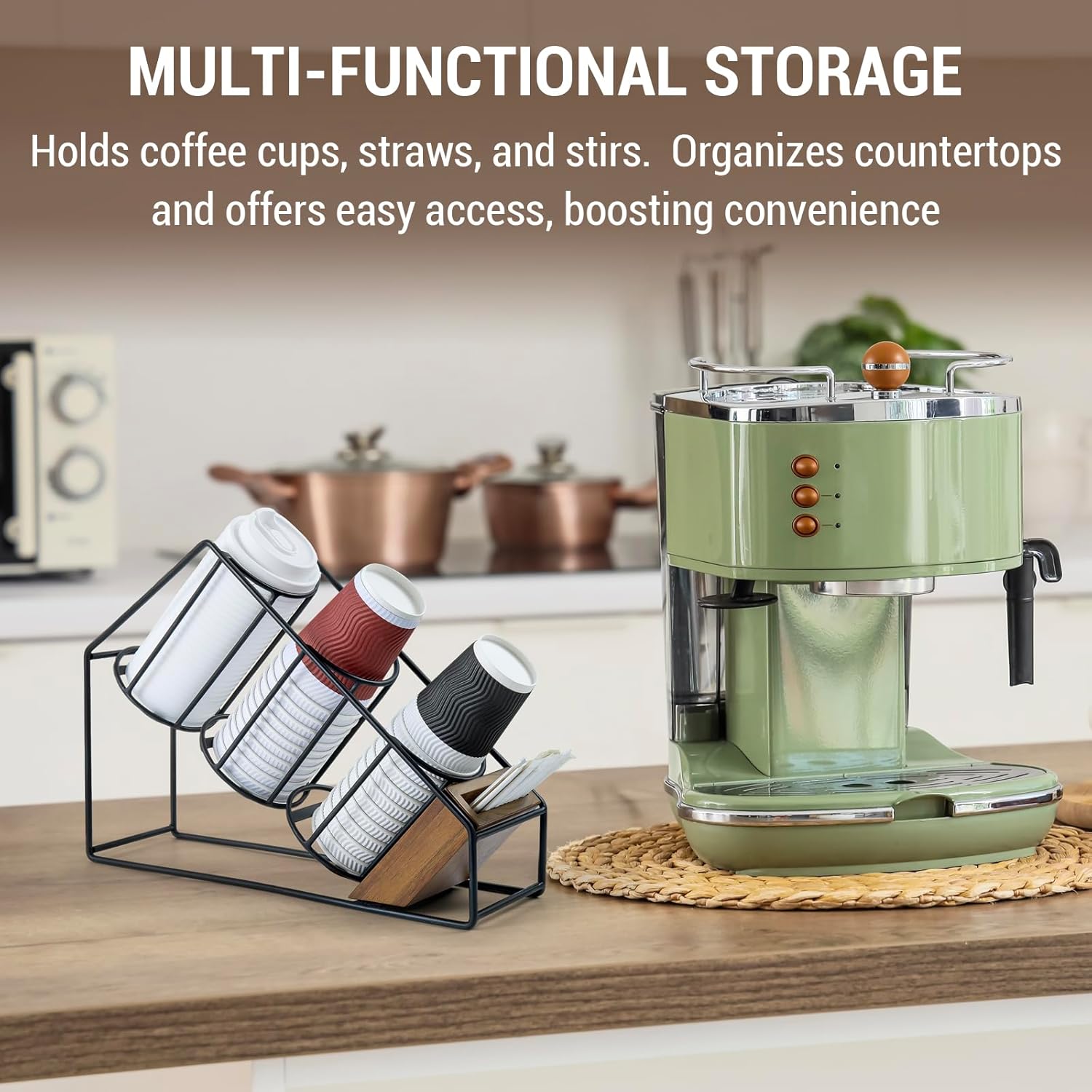 - Multi-Compartment Organization: Designed with separate sections to neatly hold disposable coffee cups, lids, straws, and stirrers—perfect for keeping beverage stations tidy and efficient.